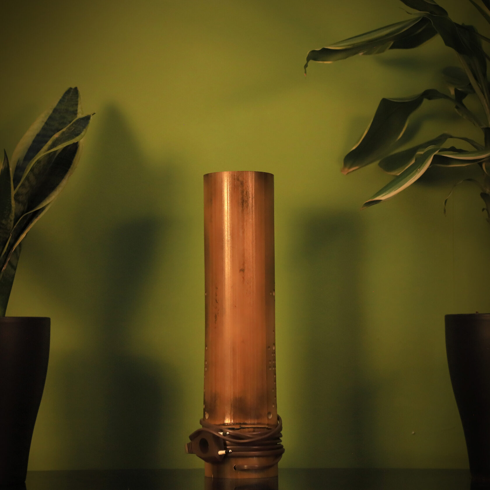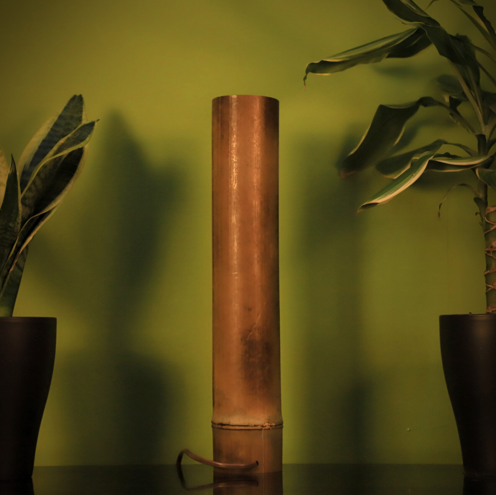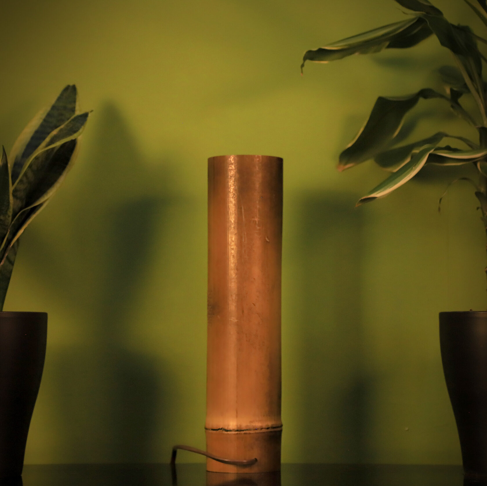Материал – ствол бамбука. Высота 38 см Ширина 7 см. Внутри светодиодная лампа в удлиненном ретро стиле 30 см длинны. Цоколь Е14. Коричневый сетевой шнур EU plug 1,5 метра с выключателем. Вес 200-300 гр.