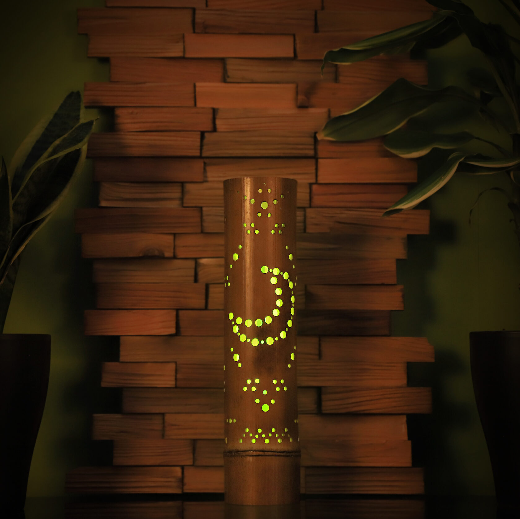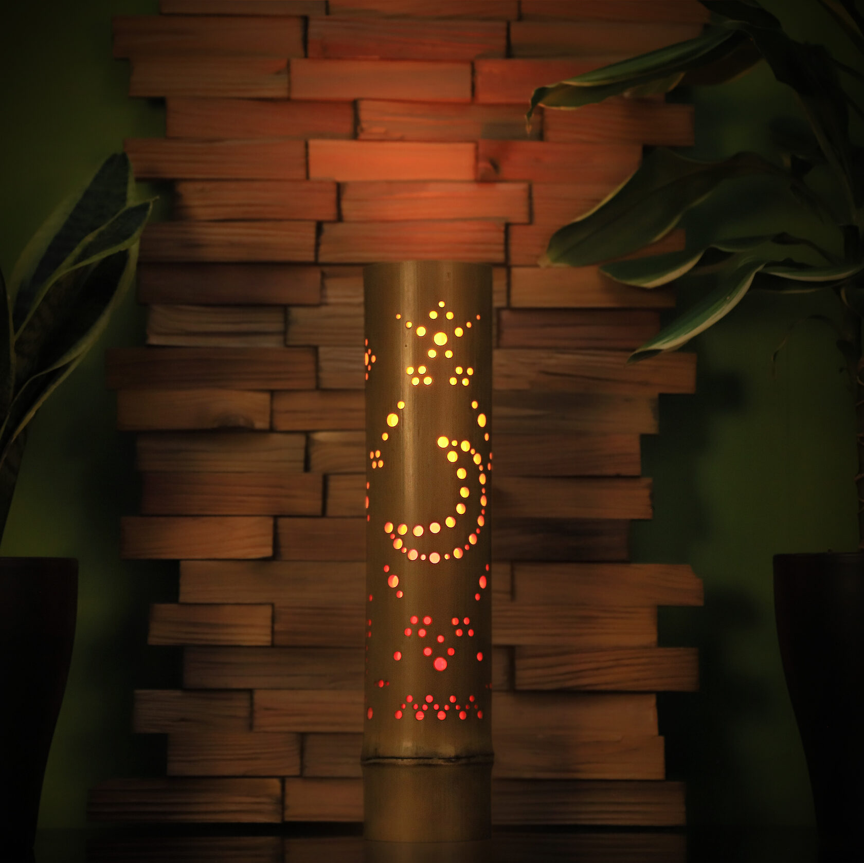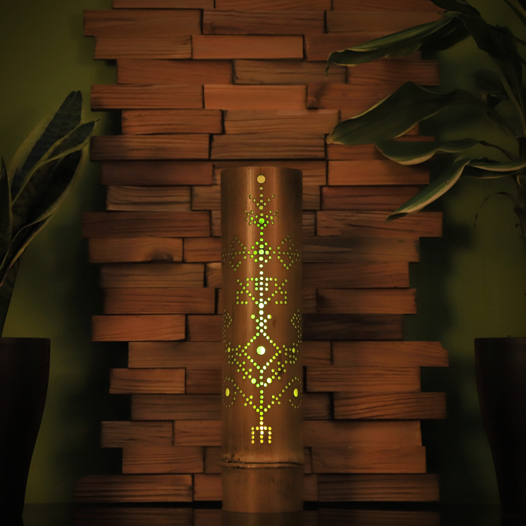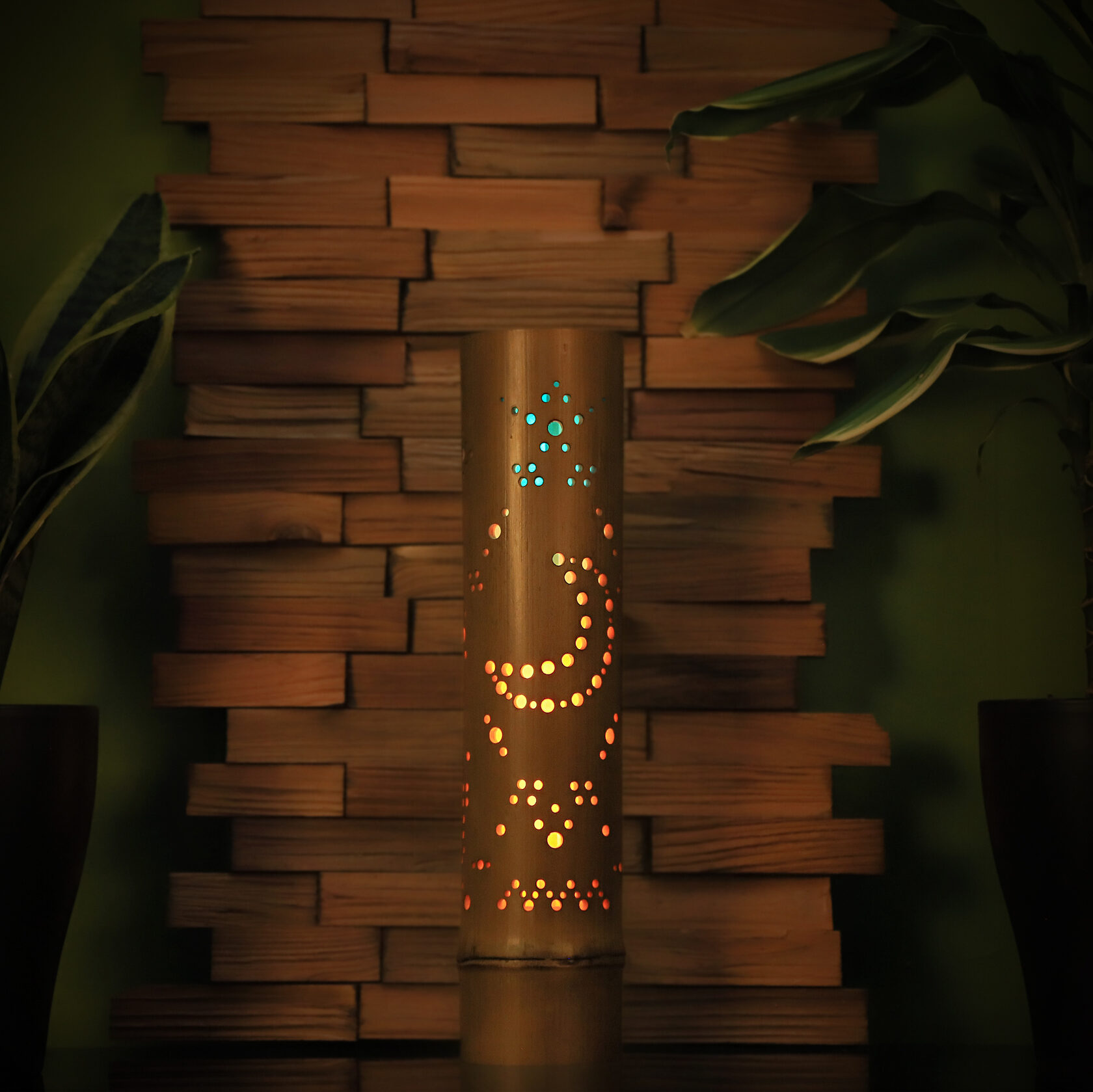 Светильник из бамбука. Условный подвид ЛУНА . Рисунок «ЛУНА» входит в серию сюжетных орнаментов по этническим мотивам. Увеличивает бдительность и спокойствие.