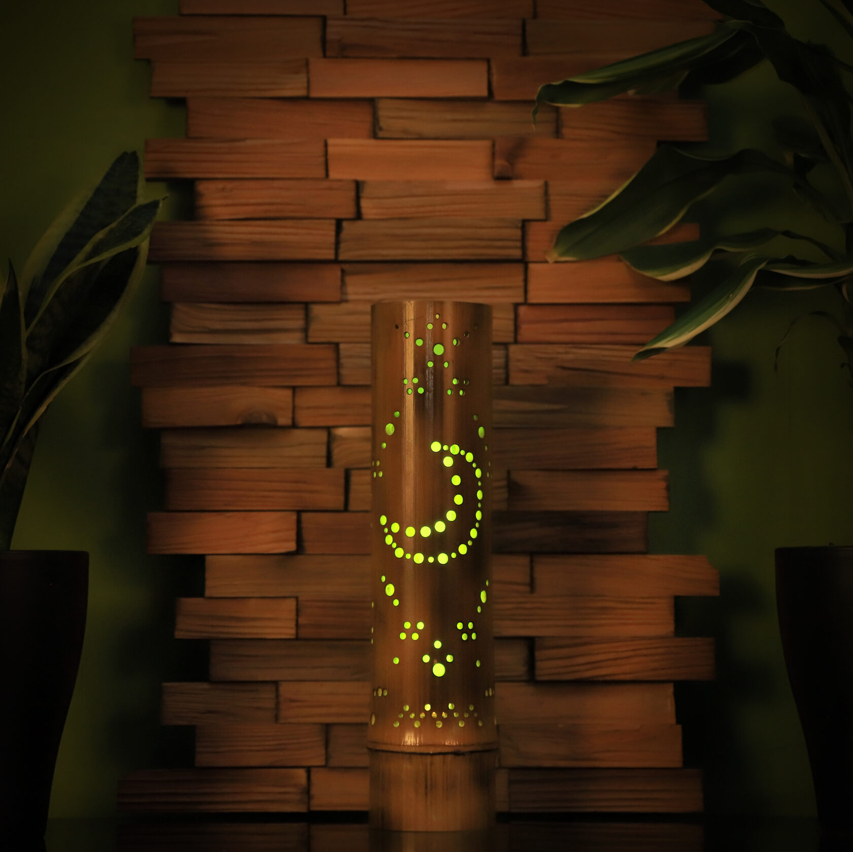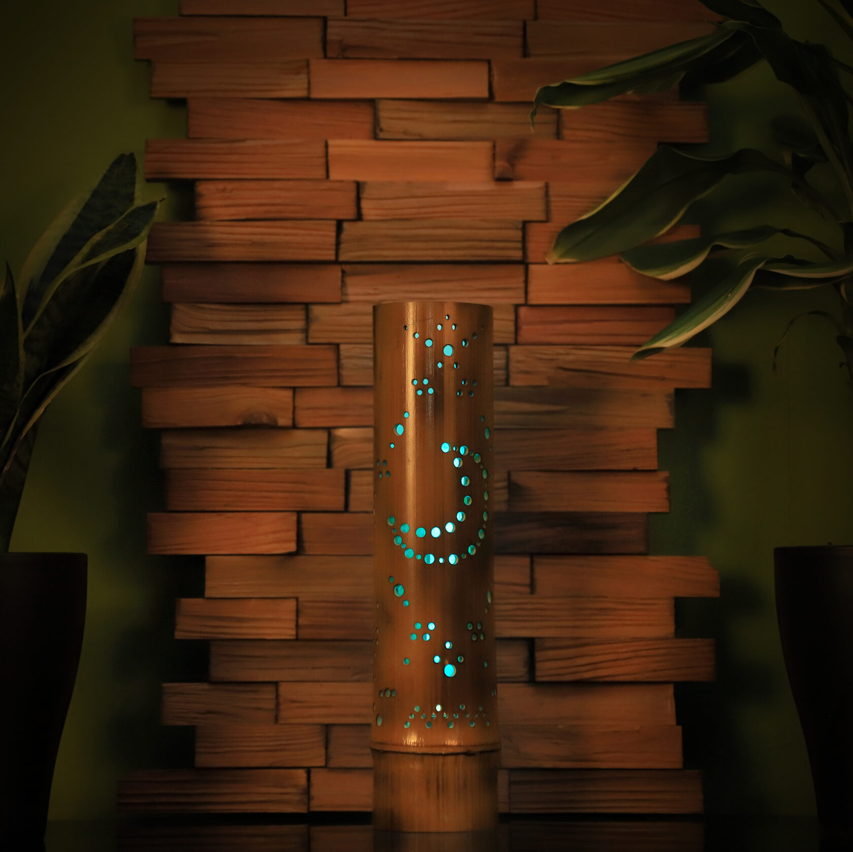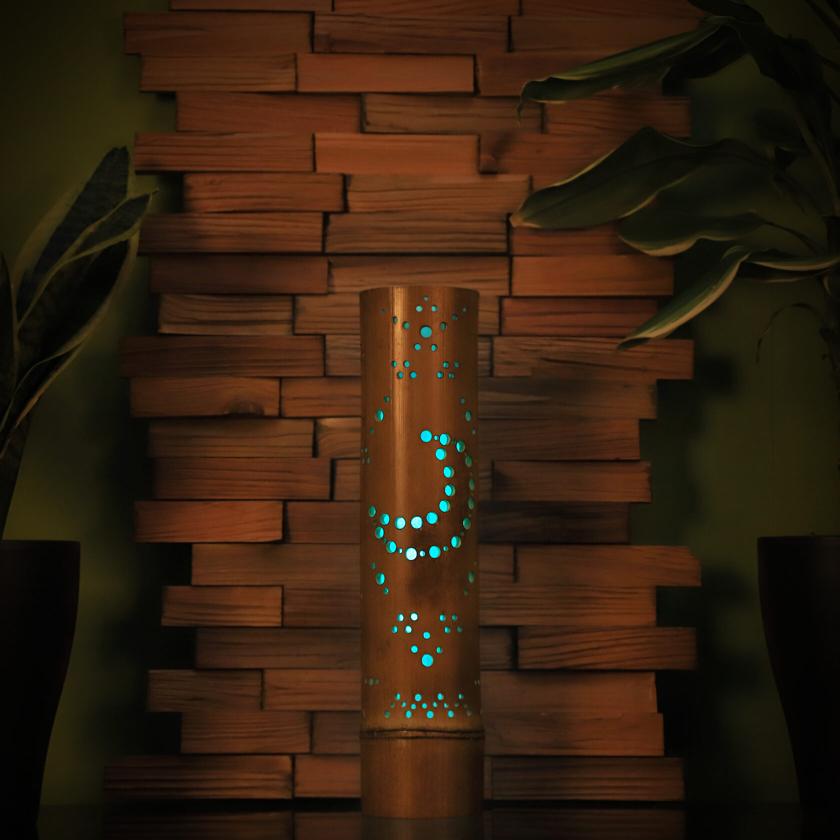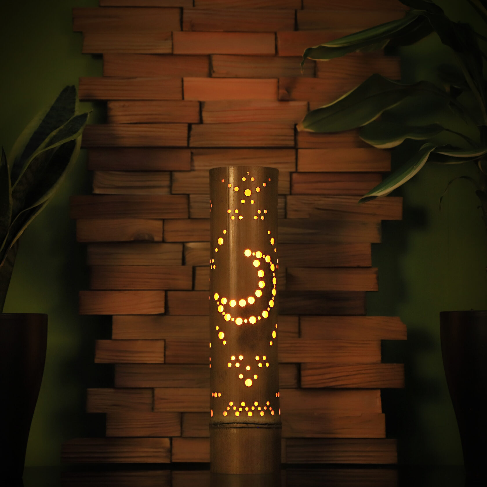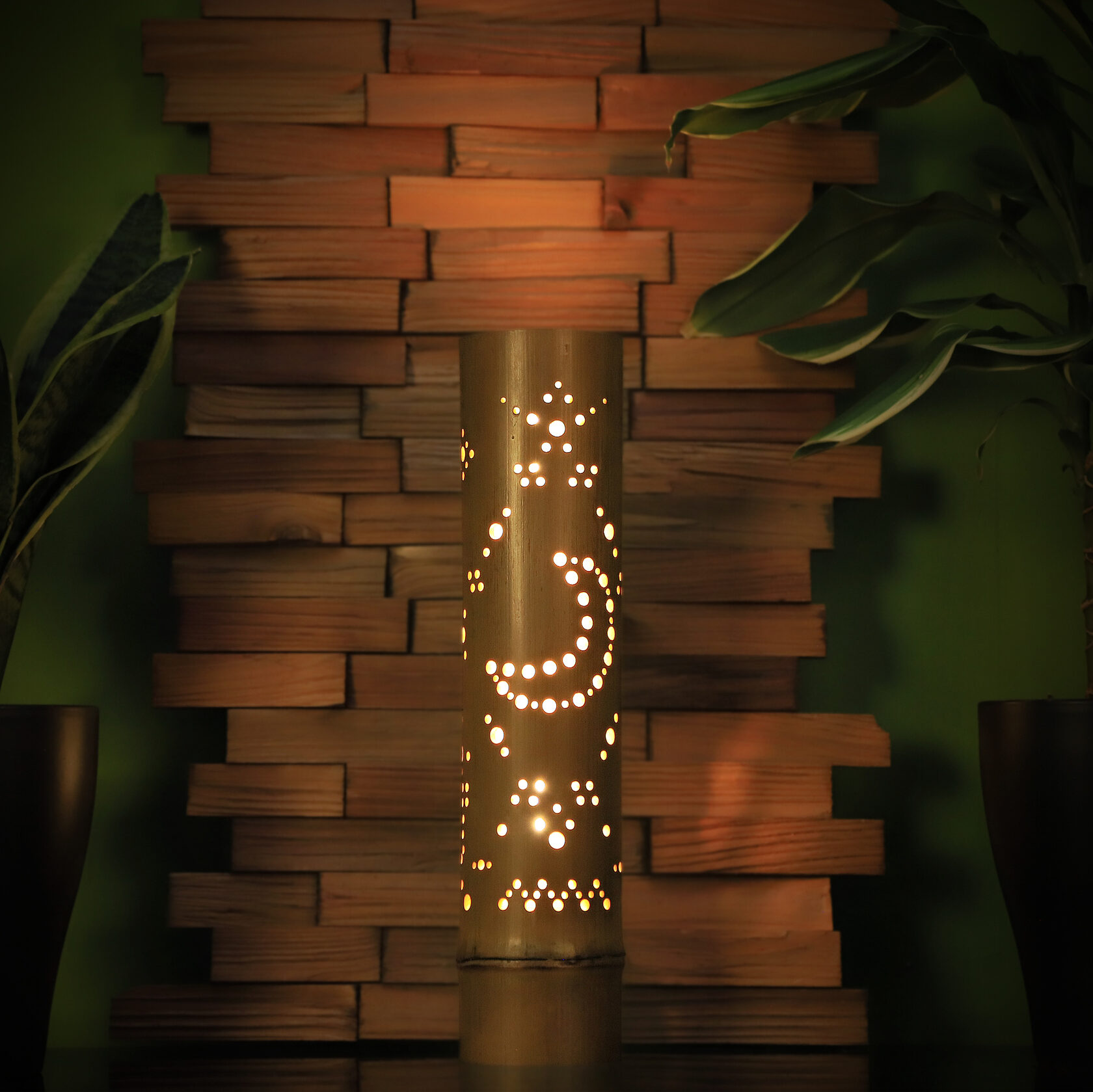 Светильник из бамбука. Условный подвид ЛУНА . Рисунок «ЛУНА» входит в серию сюжетных орнаментов по этническим мотивам. Увеличивает бдительность и спокойствие.