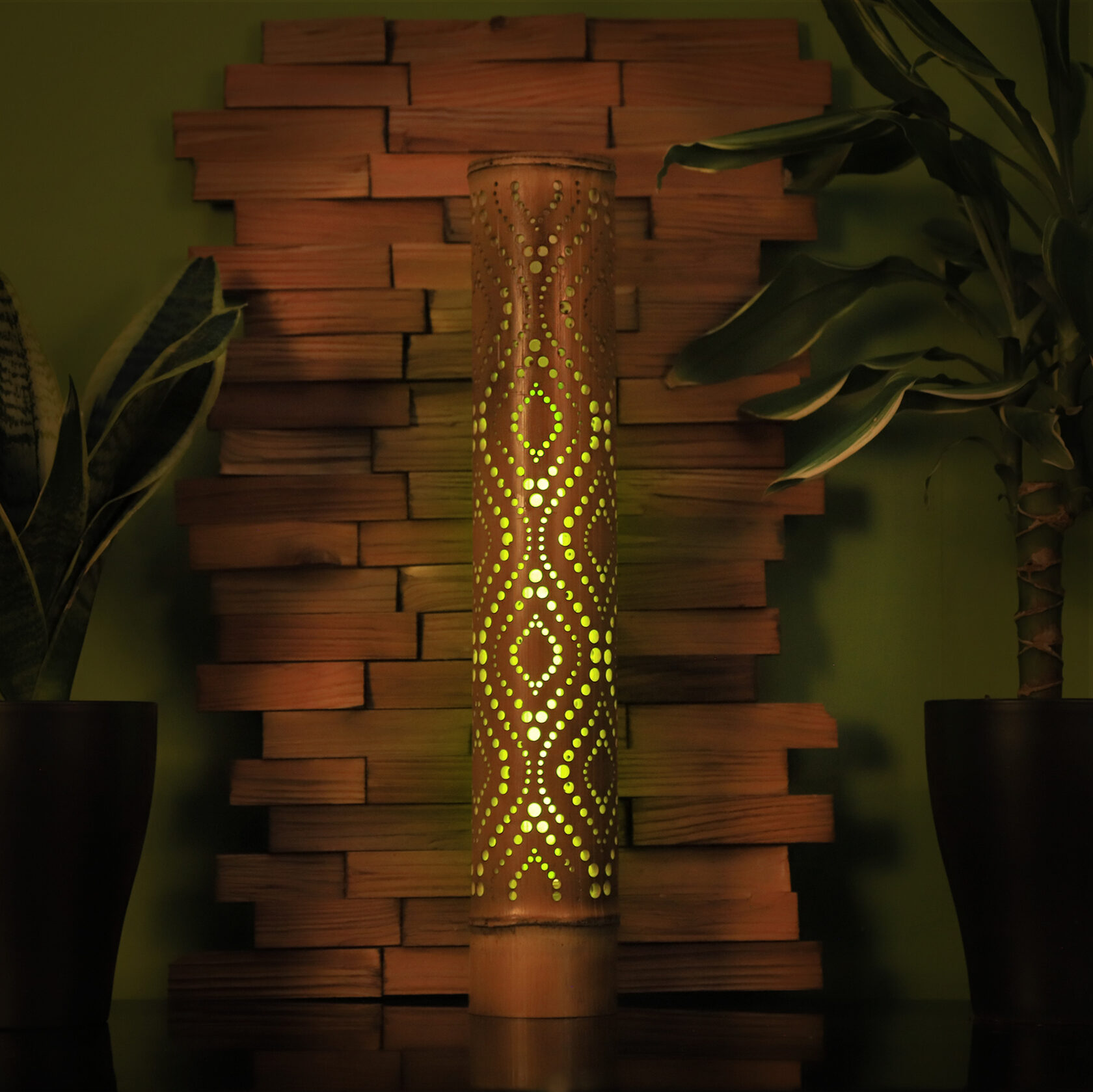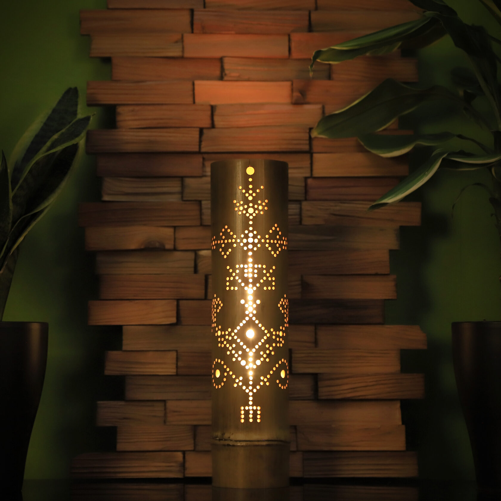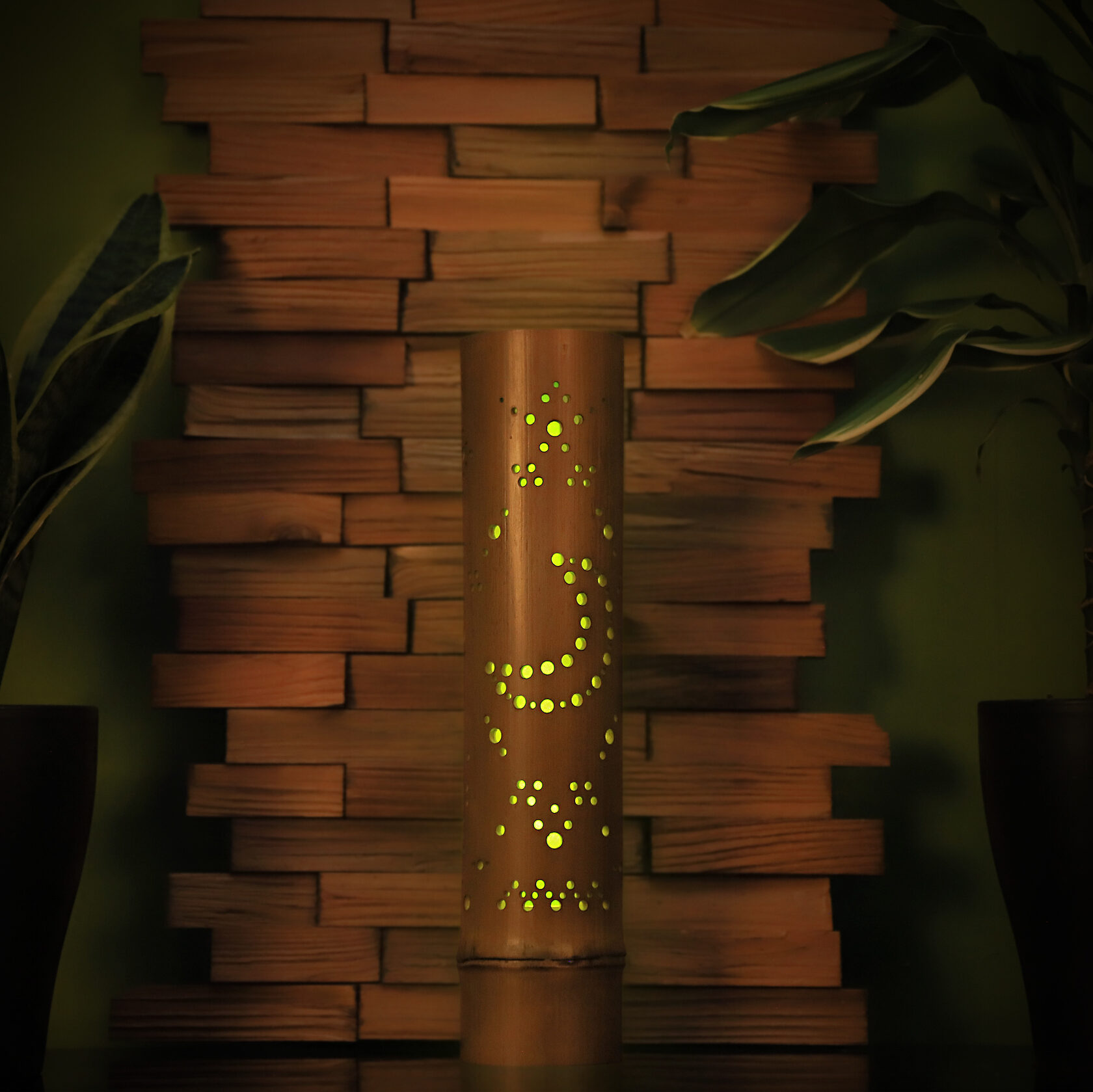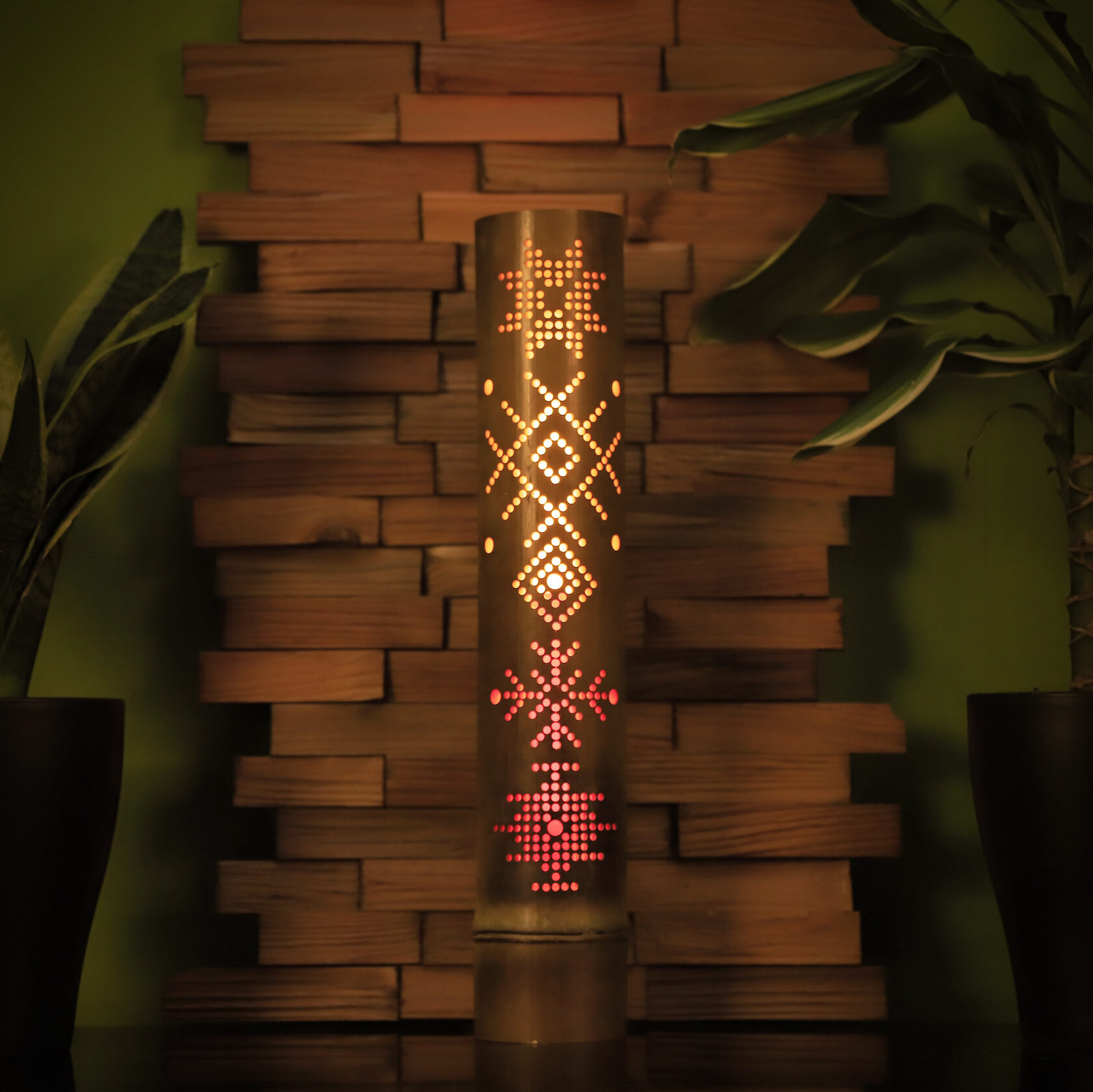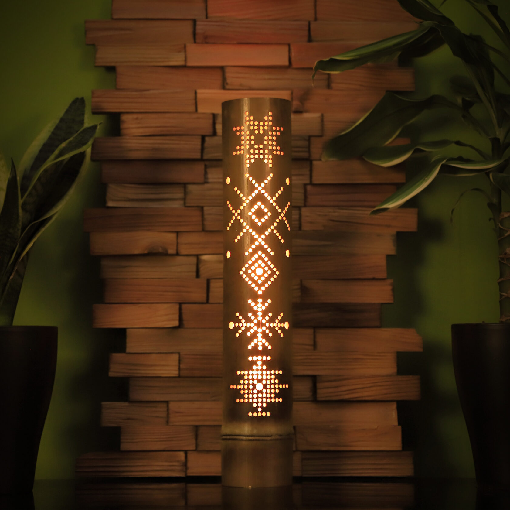 Светильник из бамбука. Условный подвид «РУНО». Рисунок «РУНО» входит в серию несюжетных орнаментов по этническим мотивам.