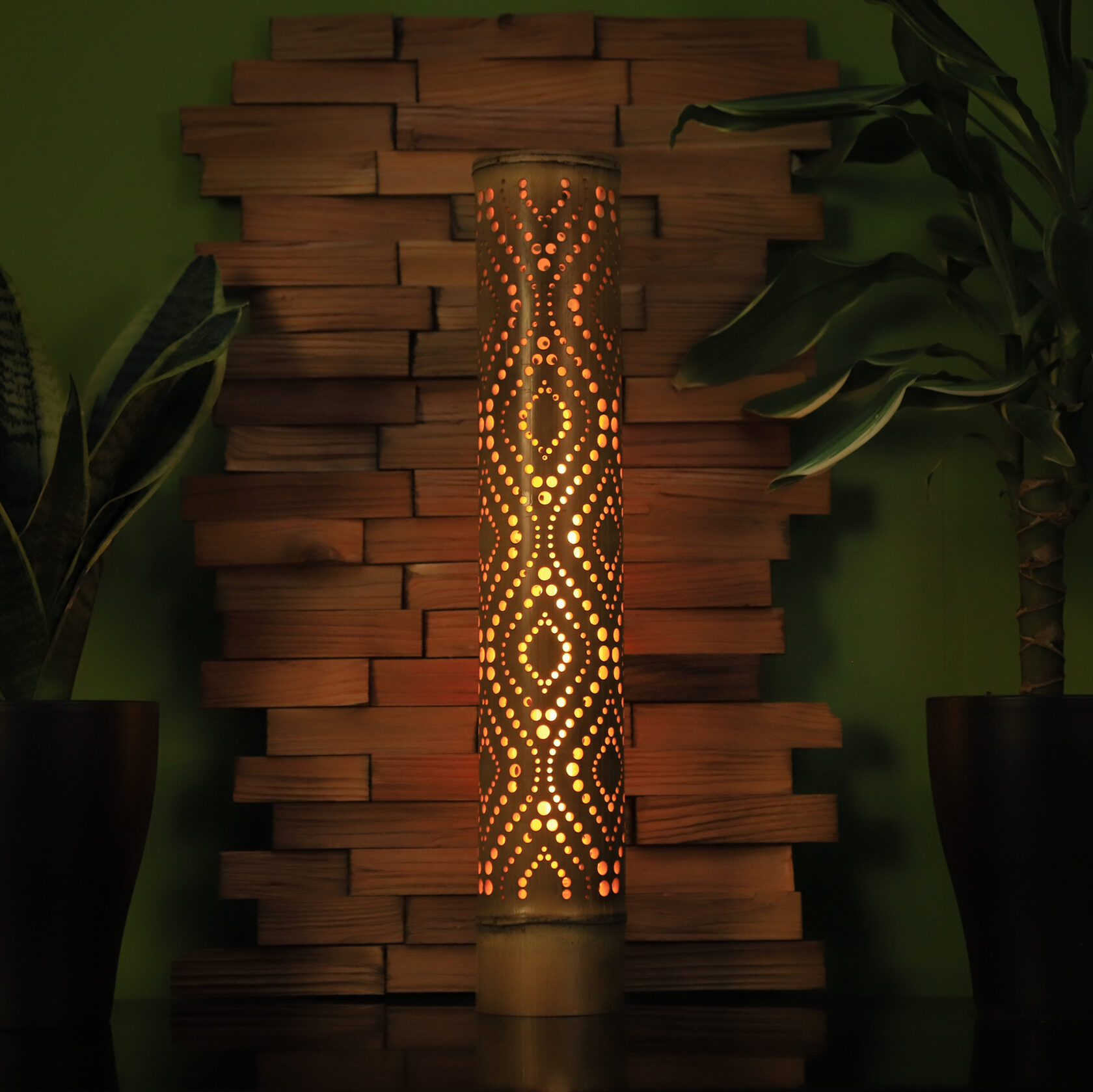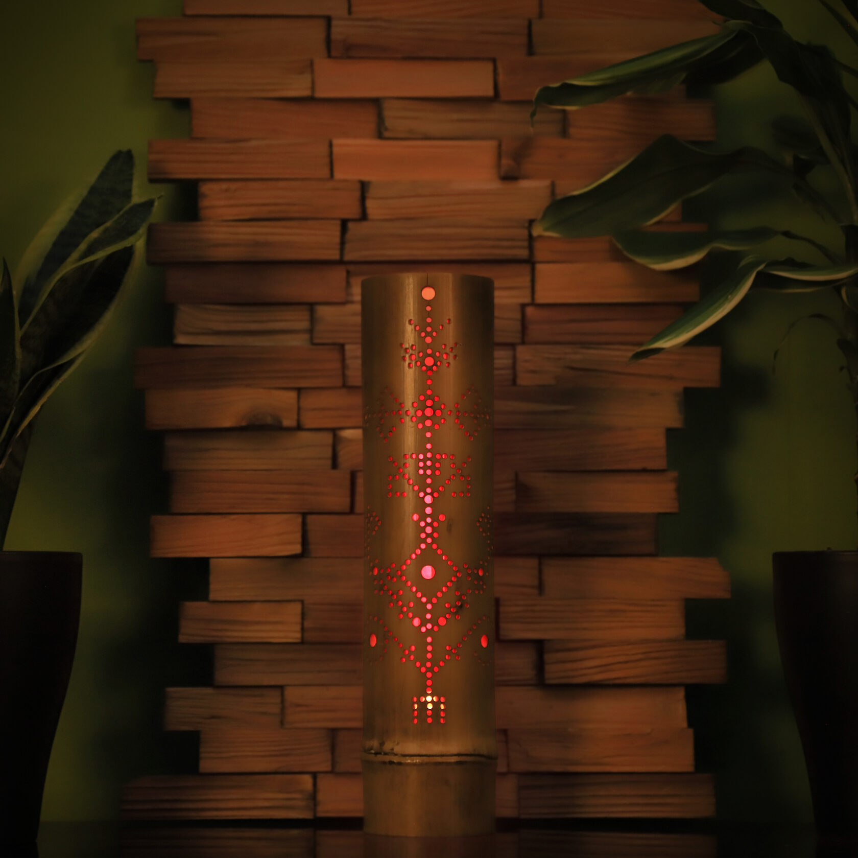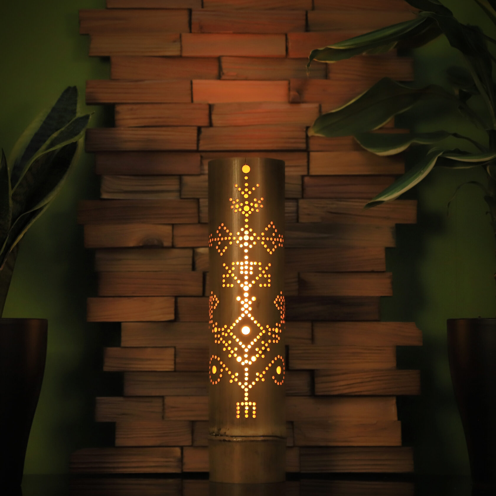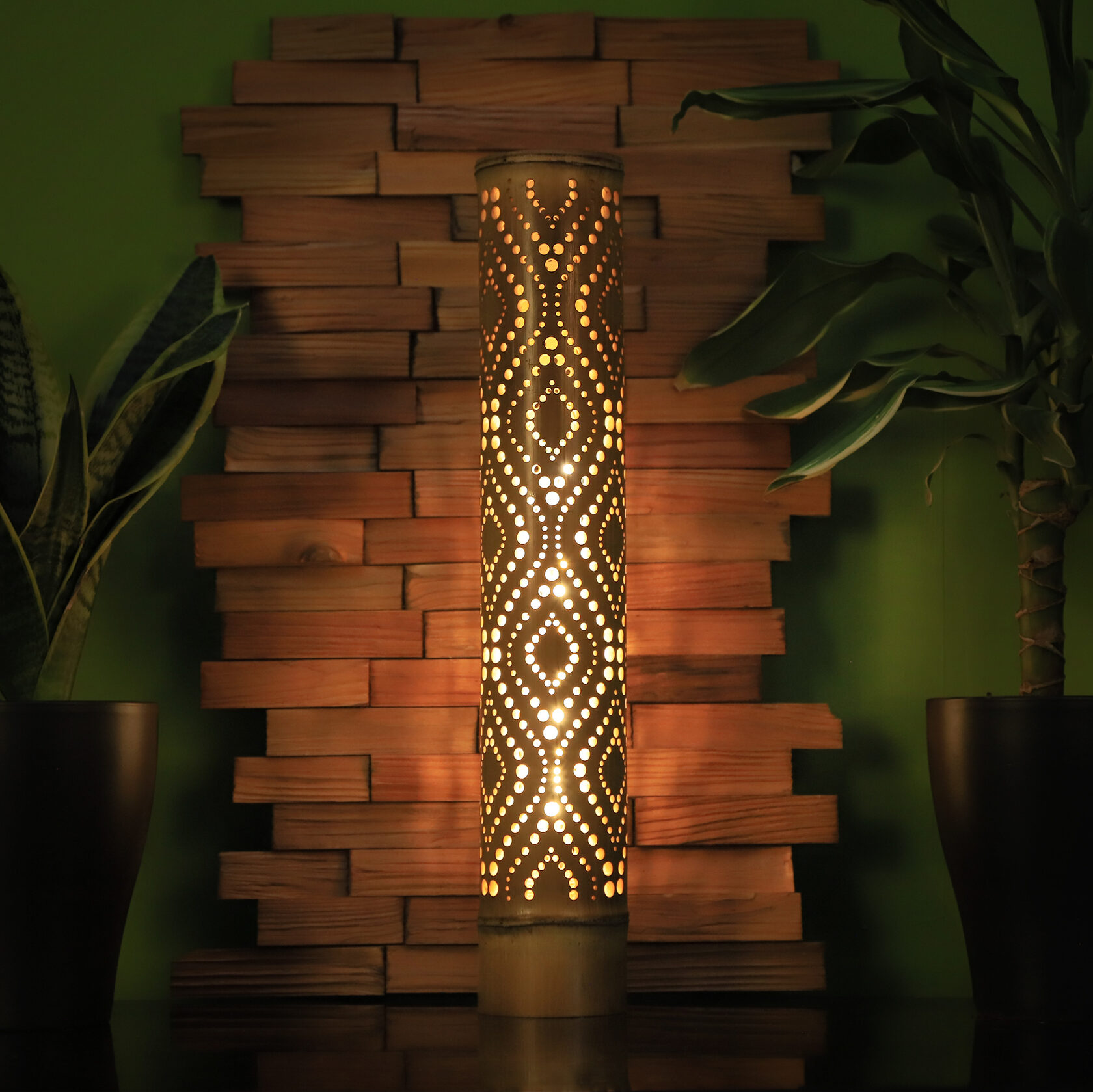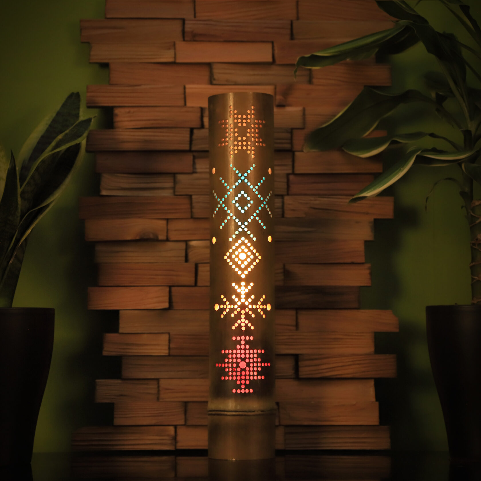 Светильник из бамбука. Условный подвид «РУНО». Рисунок «РУНО» входит в серию несюжетных орнаментов по этническим мотивам.