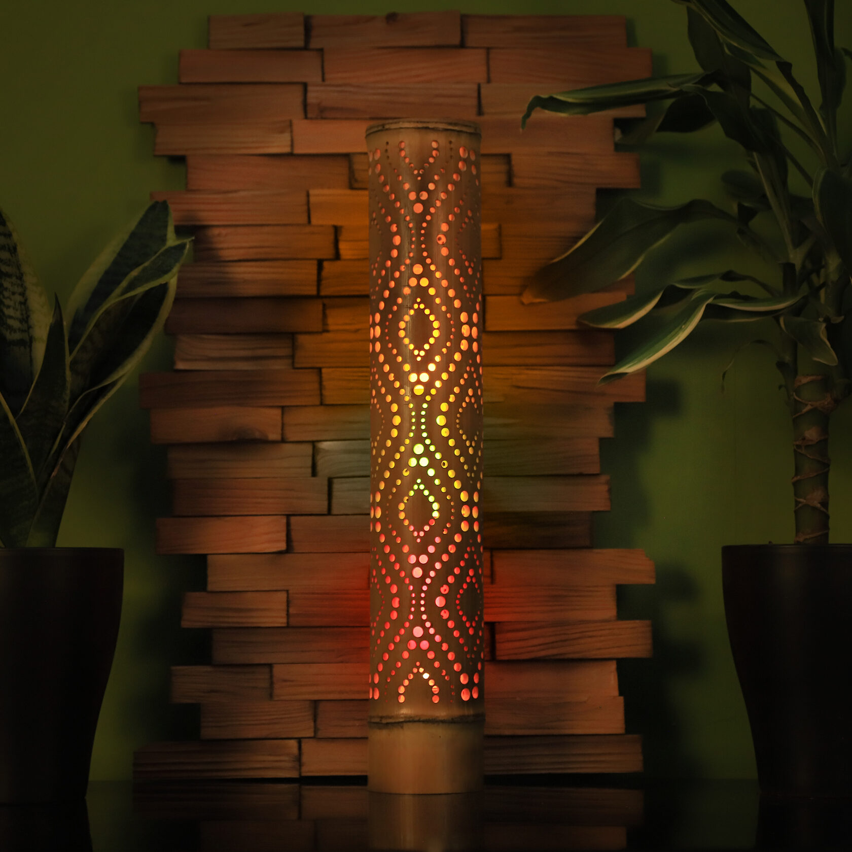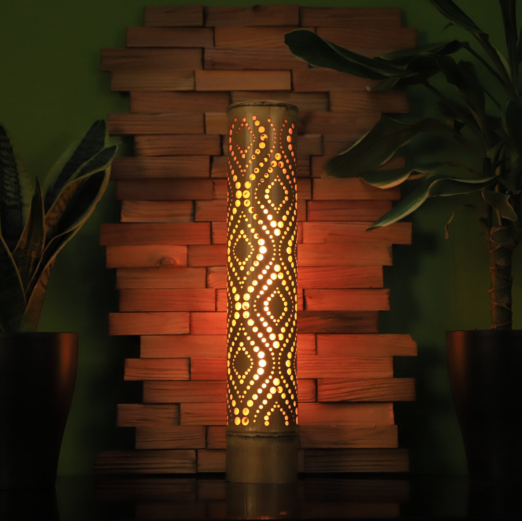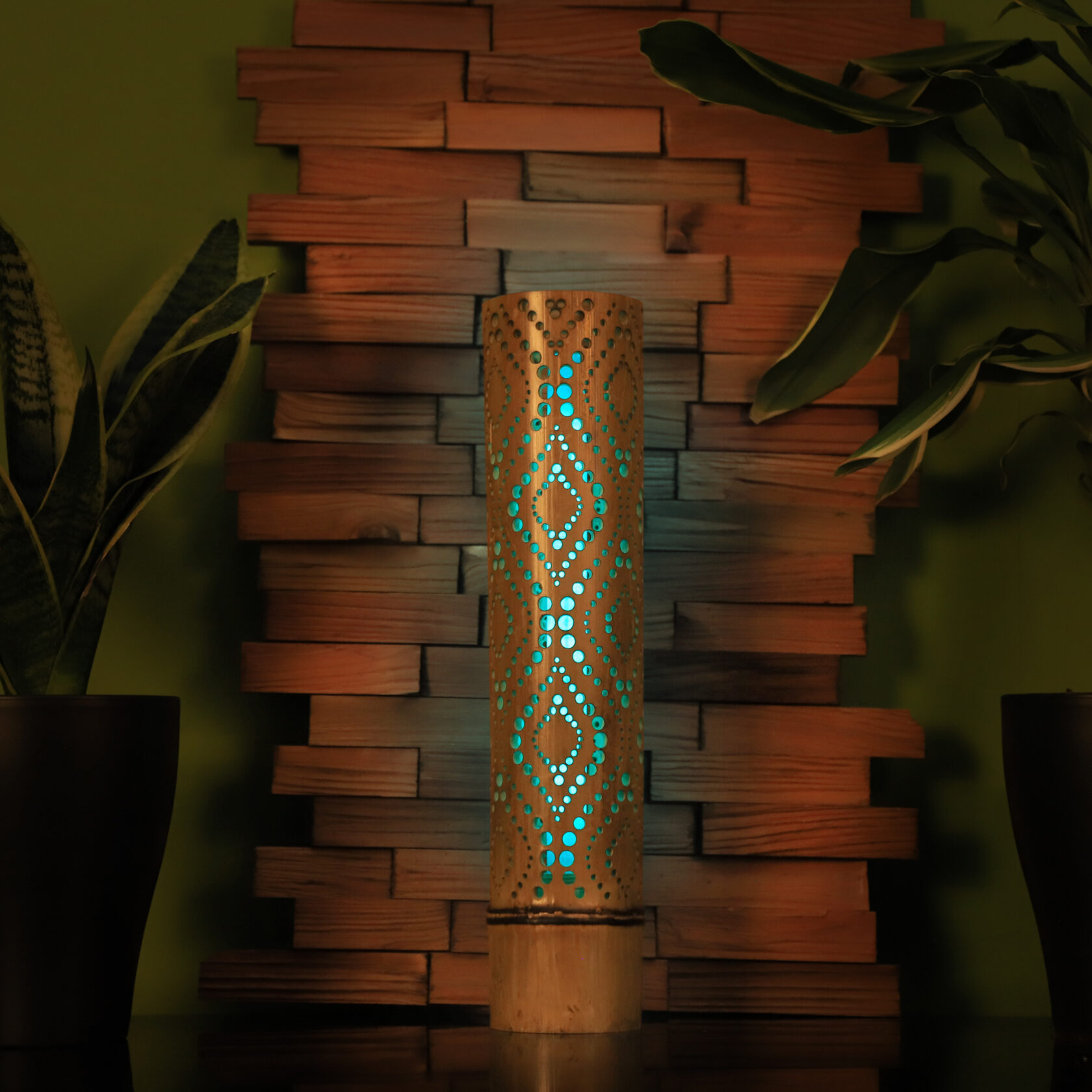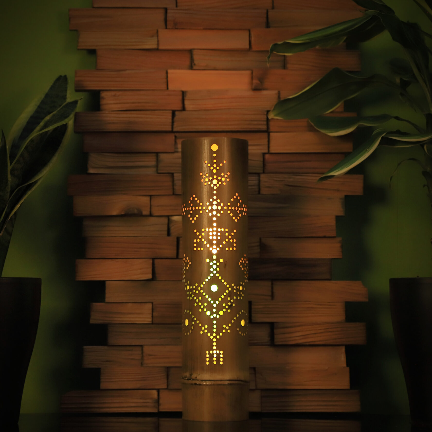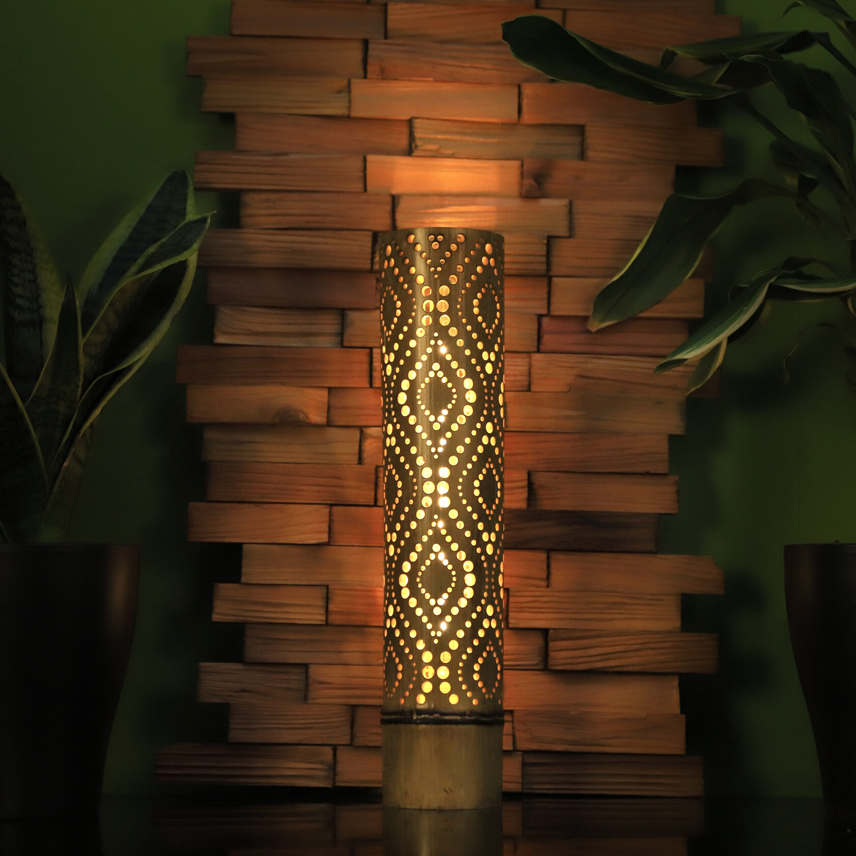 Светильник из бамбука. Условный подвид «РУНО». Рисунок «РУНО» входит в серию несюжетных орнаментов по этническим мотивам.