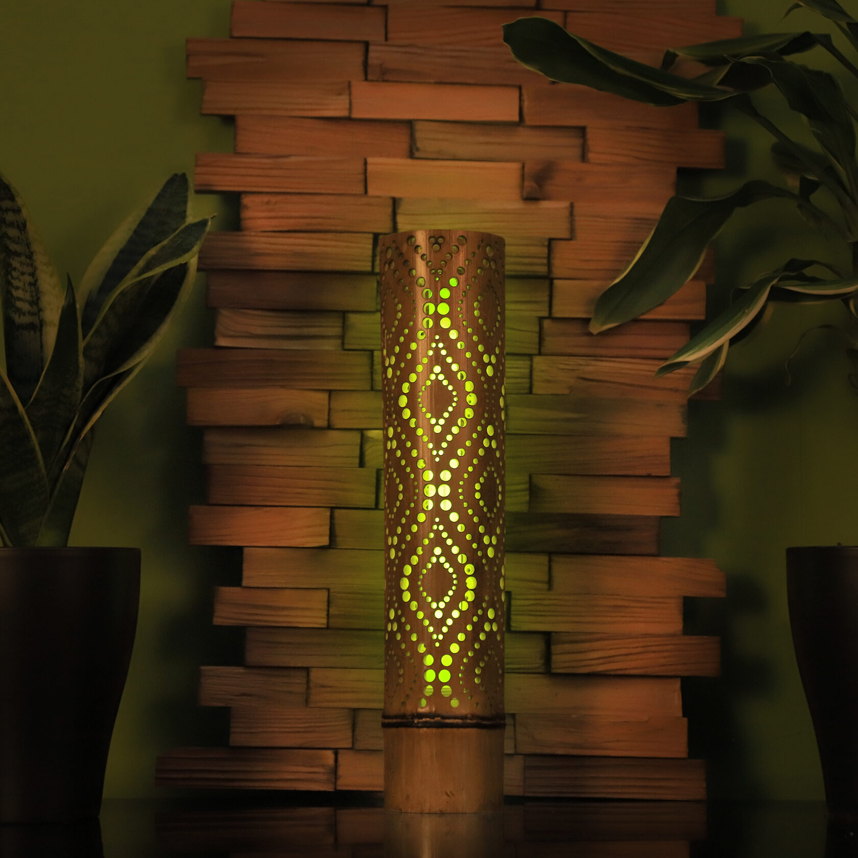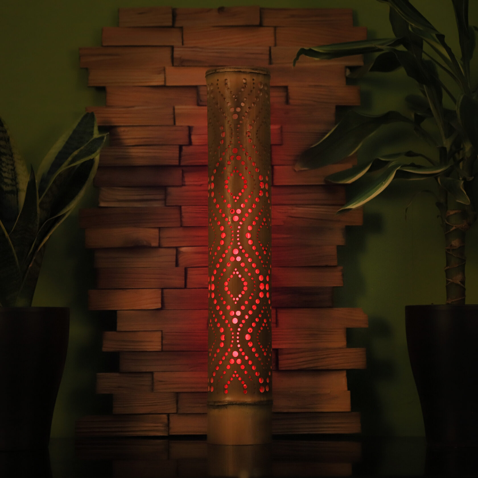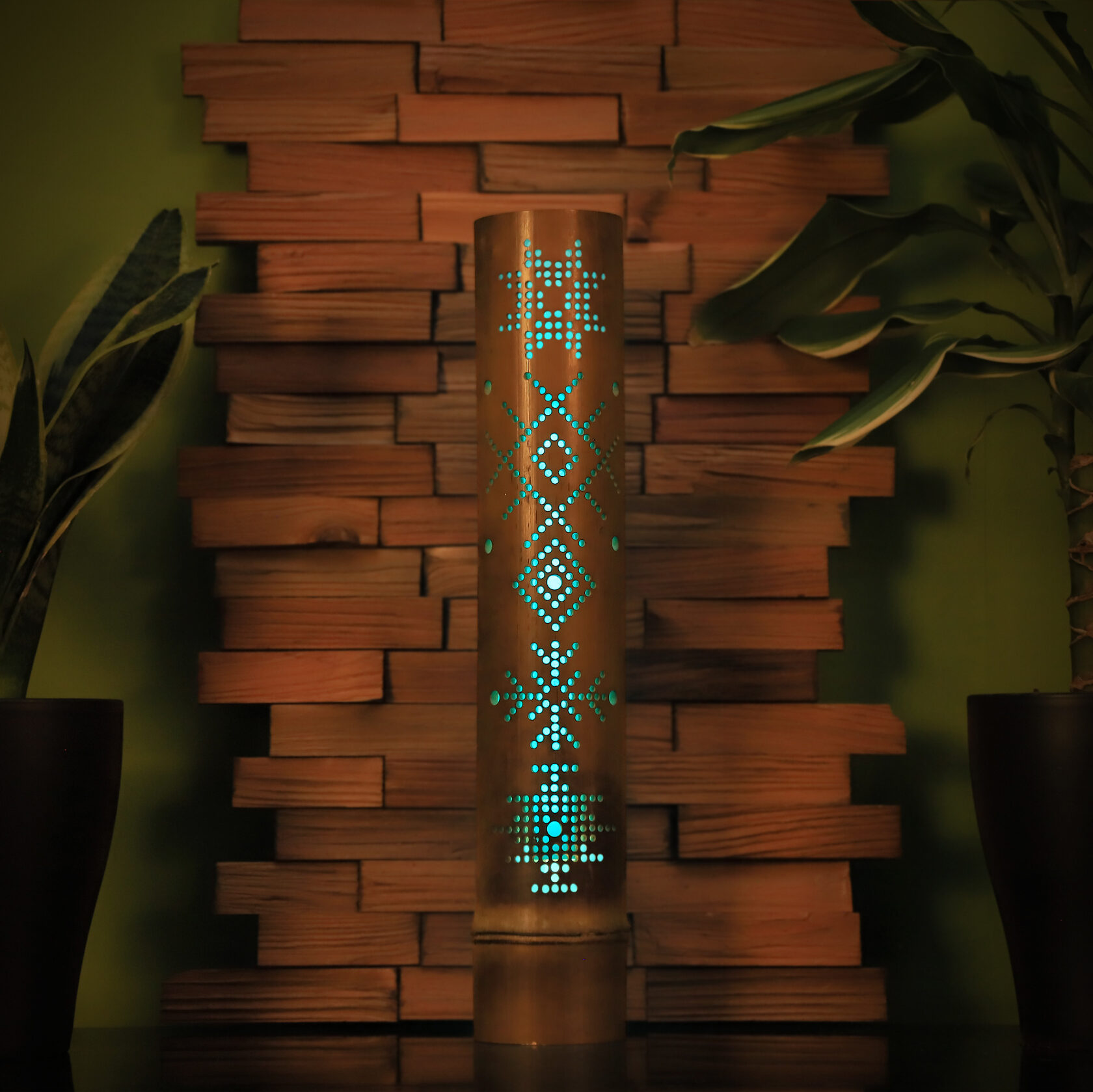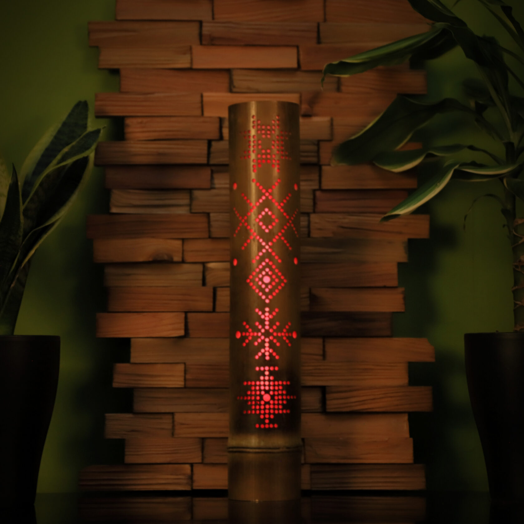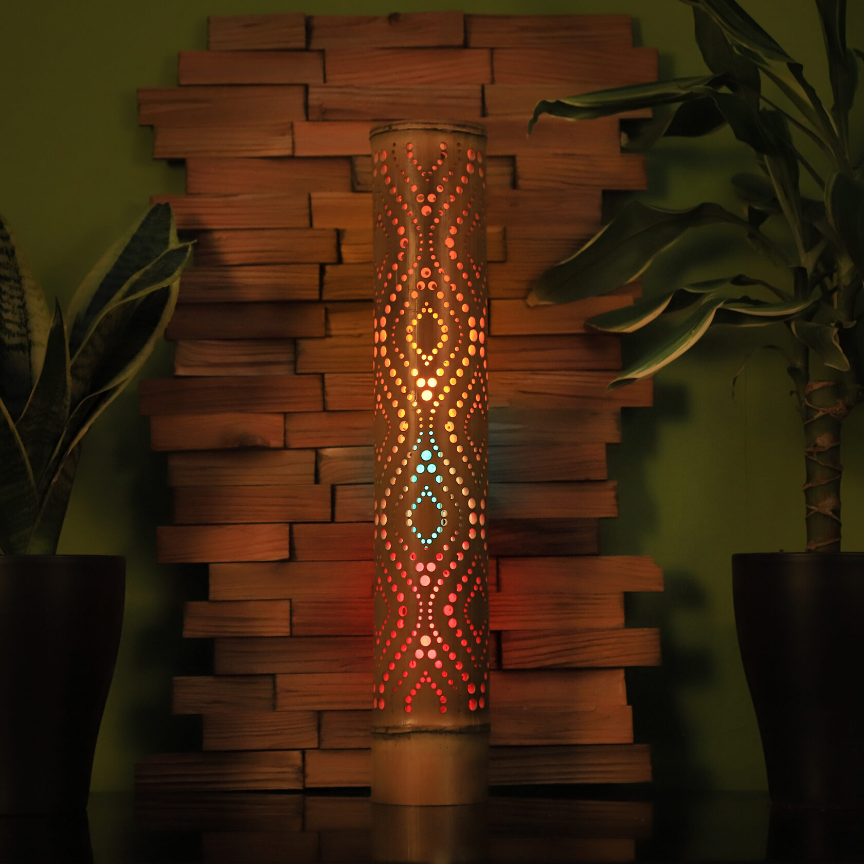 Светильник из бамбука. Условный подвид «РУНО». Рисунок «РУНО» входит в серию несюжетных орнаментов по этническим мотивам.