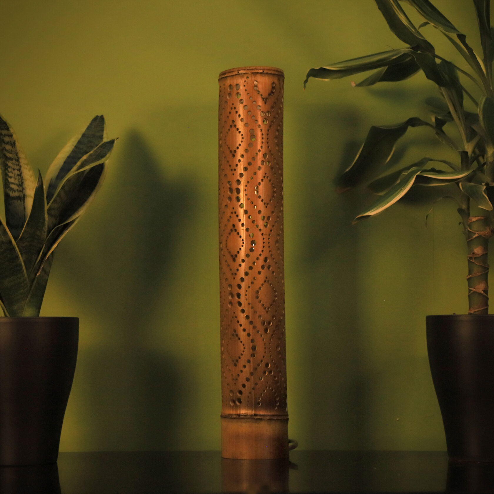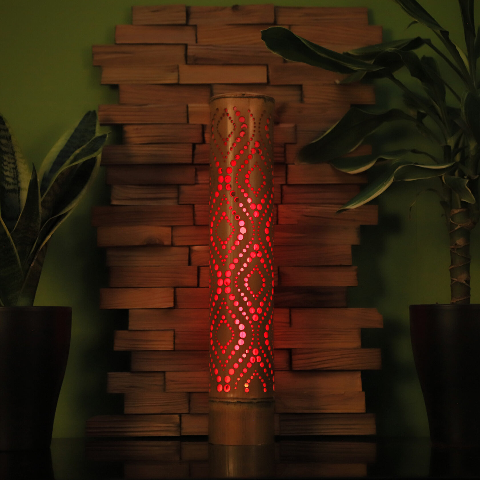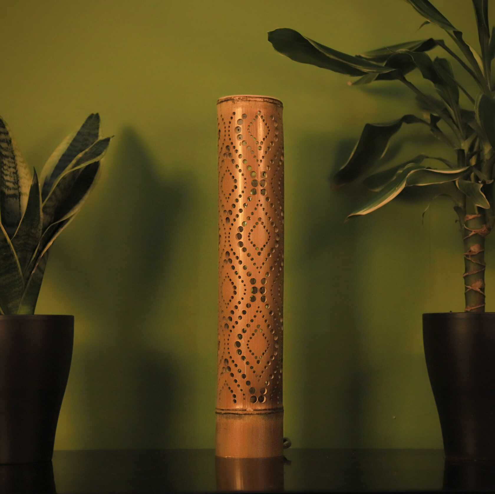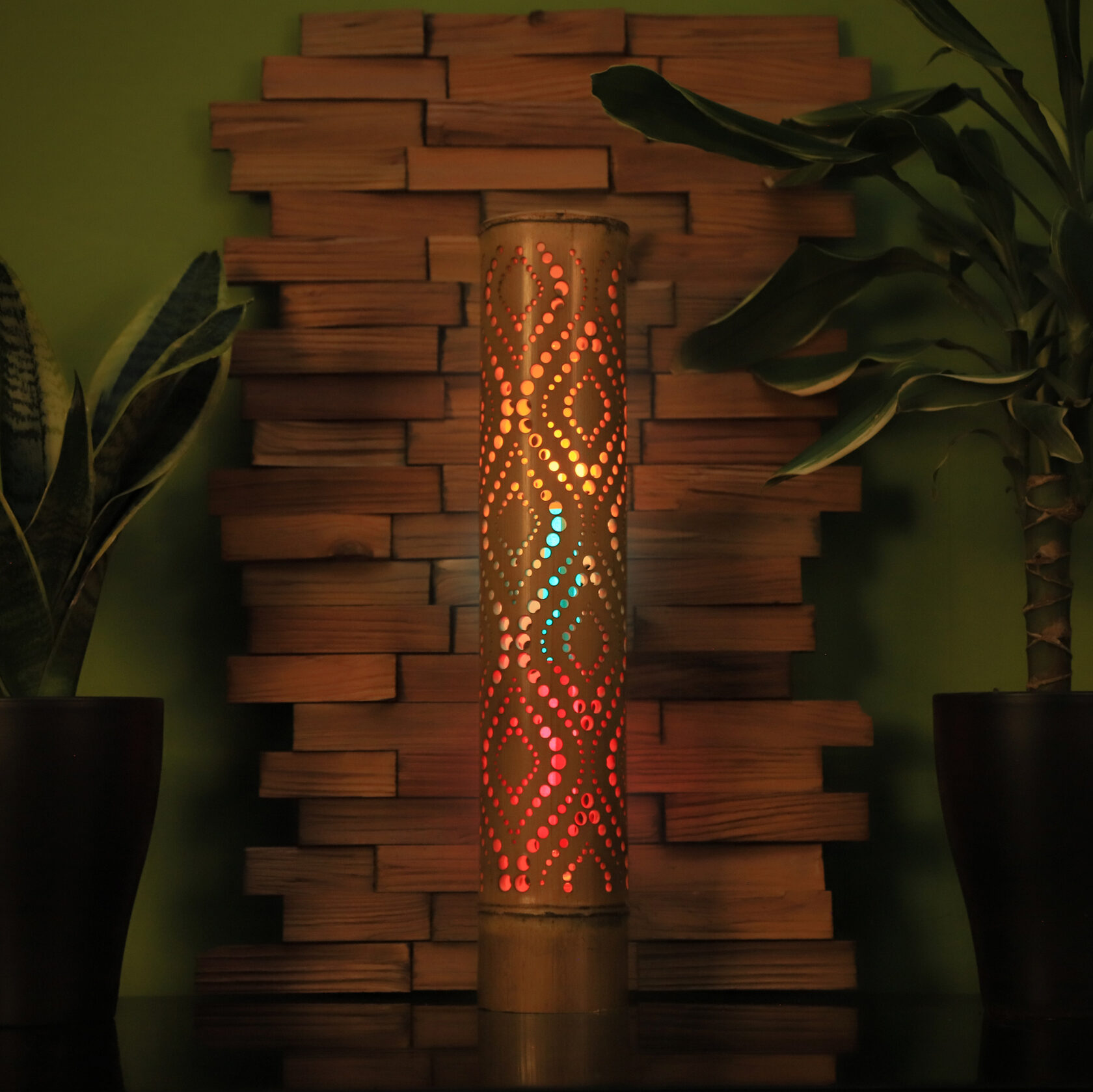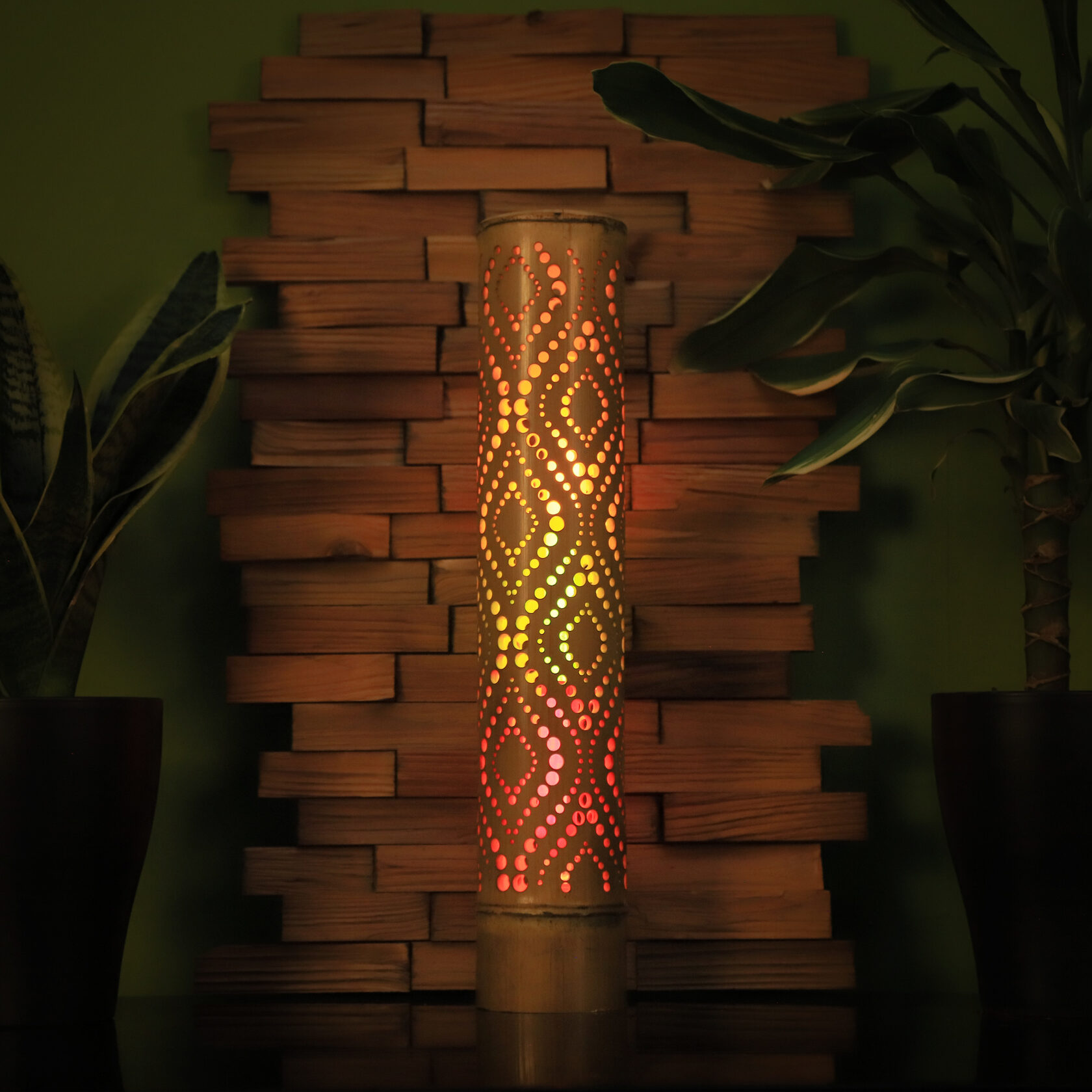 Светильник из бамбука. Условный подвид «РУНО». Рисунок «РУНО» входит в серию несюжетных орнаментов по этническим мотивам.