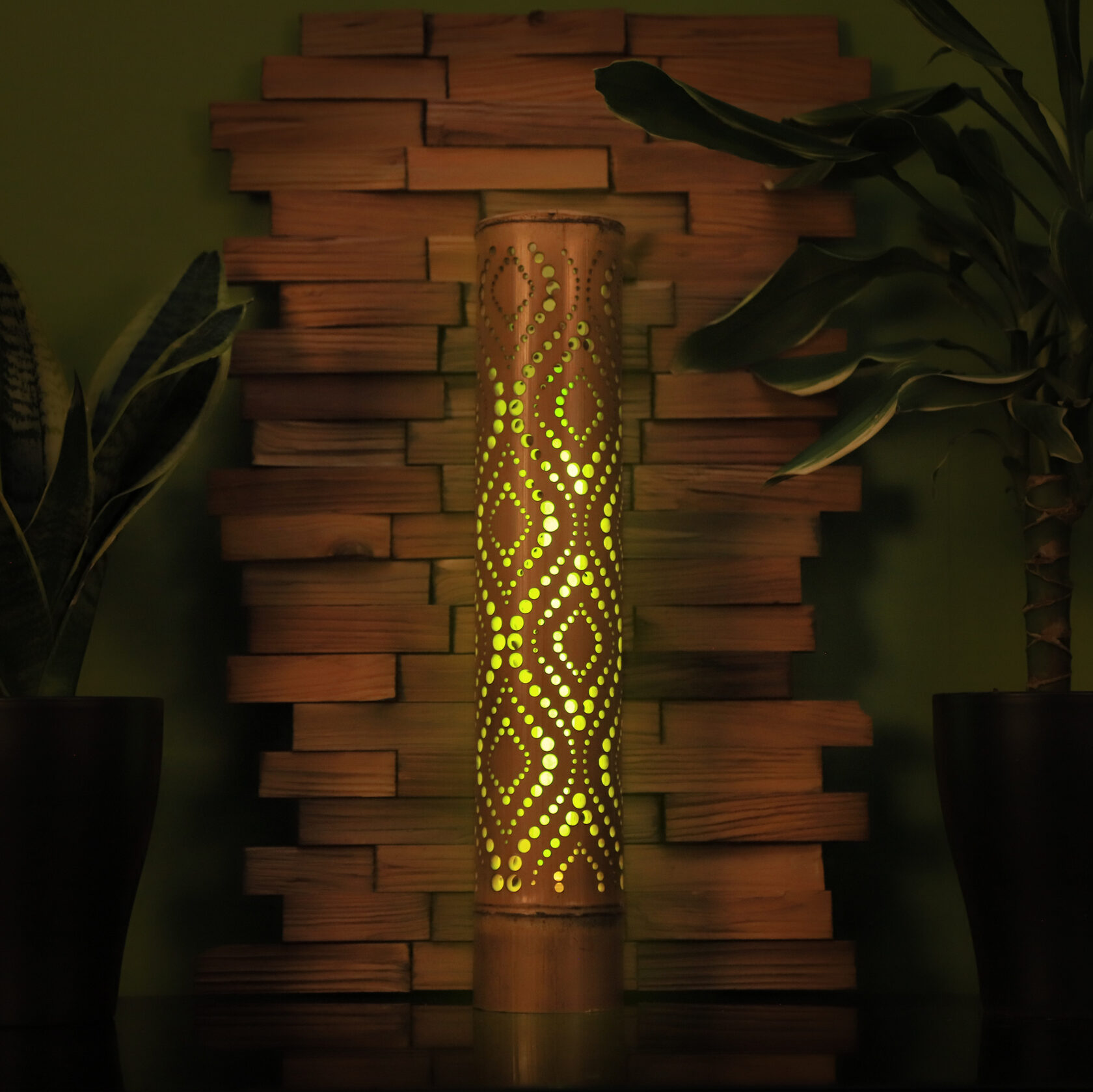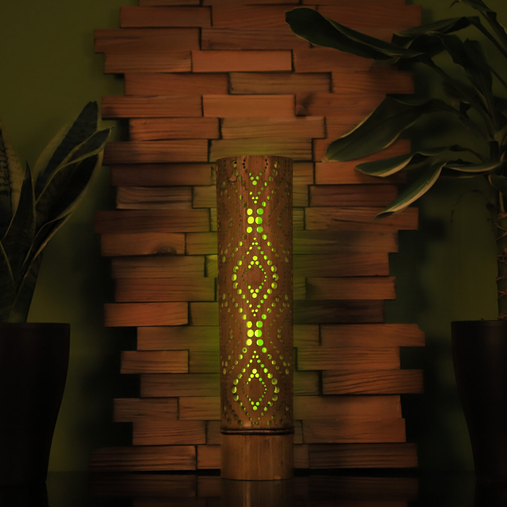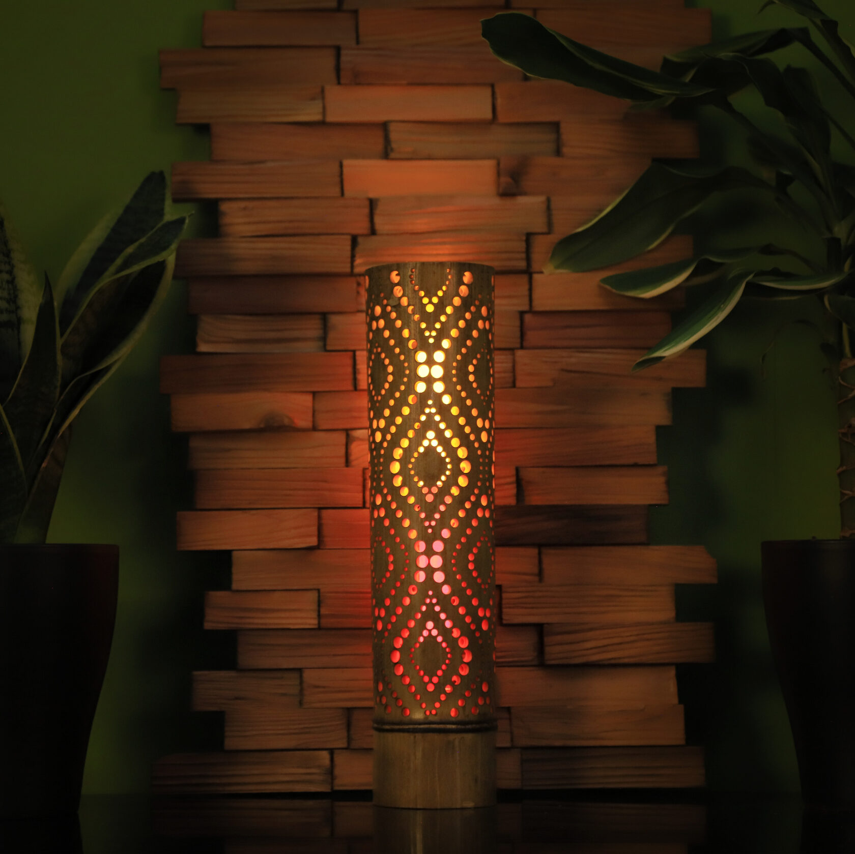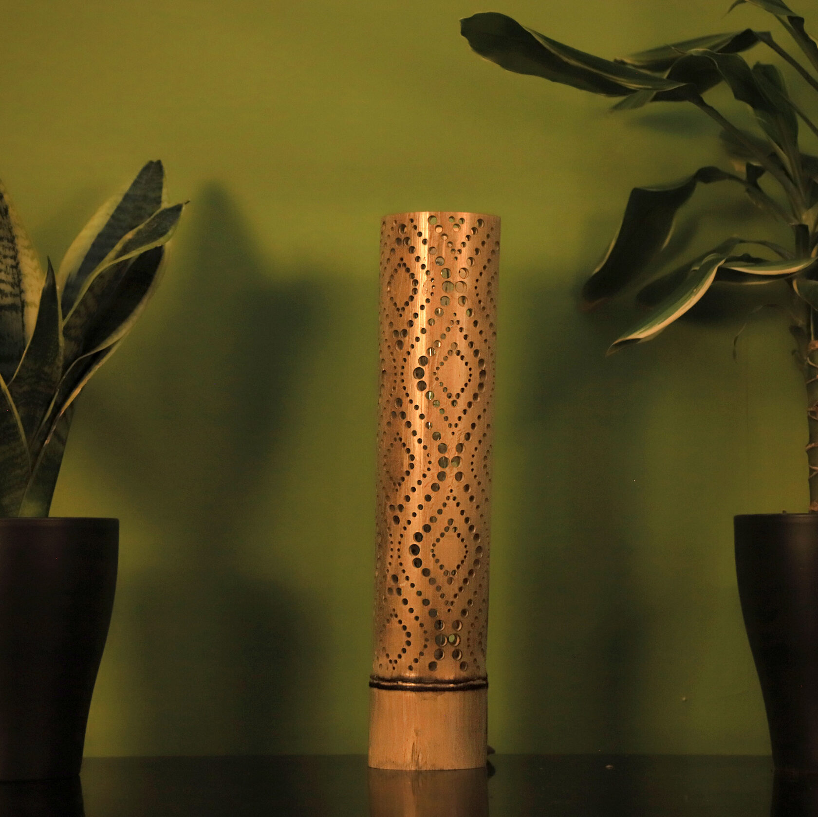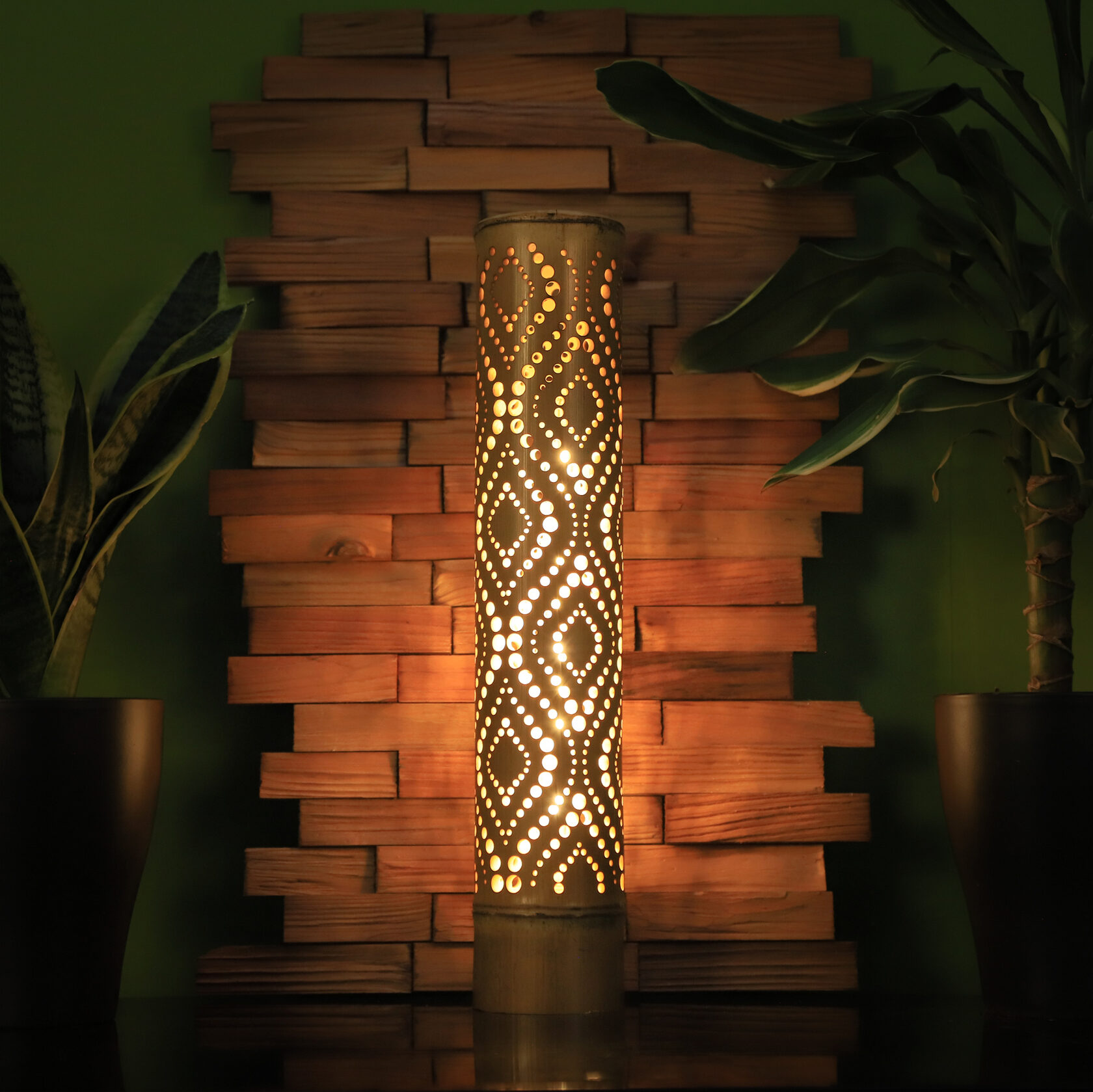 Светильник из бамбука. Условный подвид «РУНО». Рисунок «РУНО» входит в серию несюжетных орнаментов по этническим мотивам.