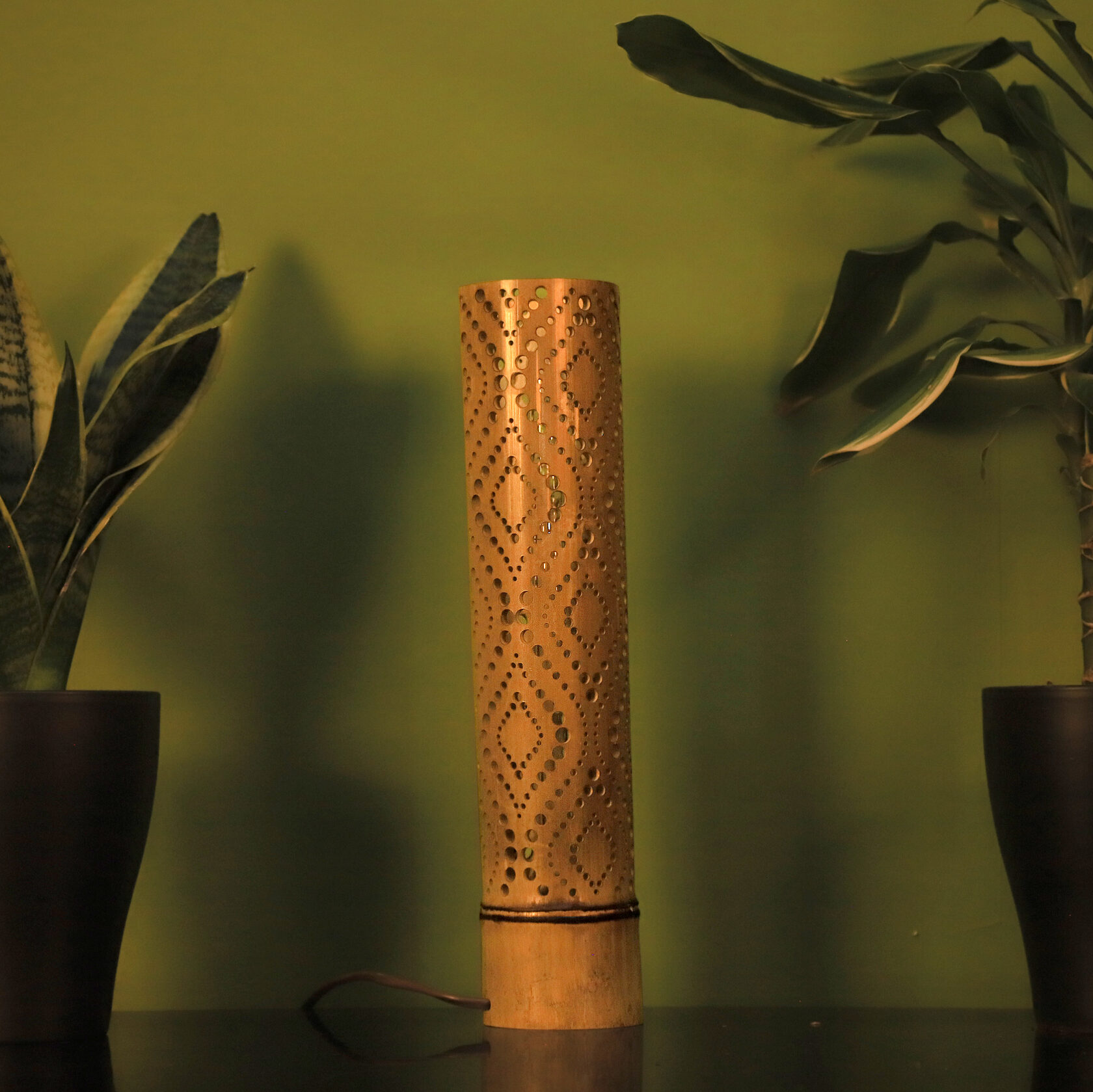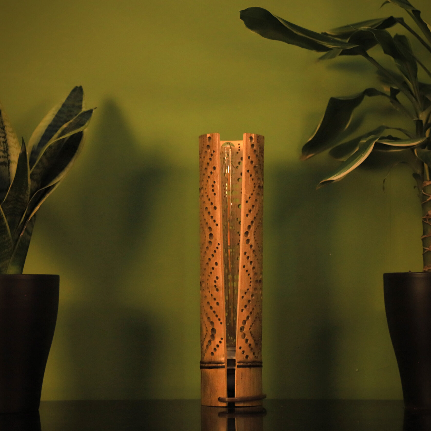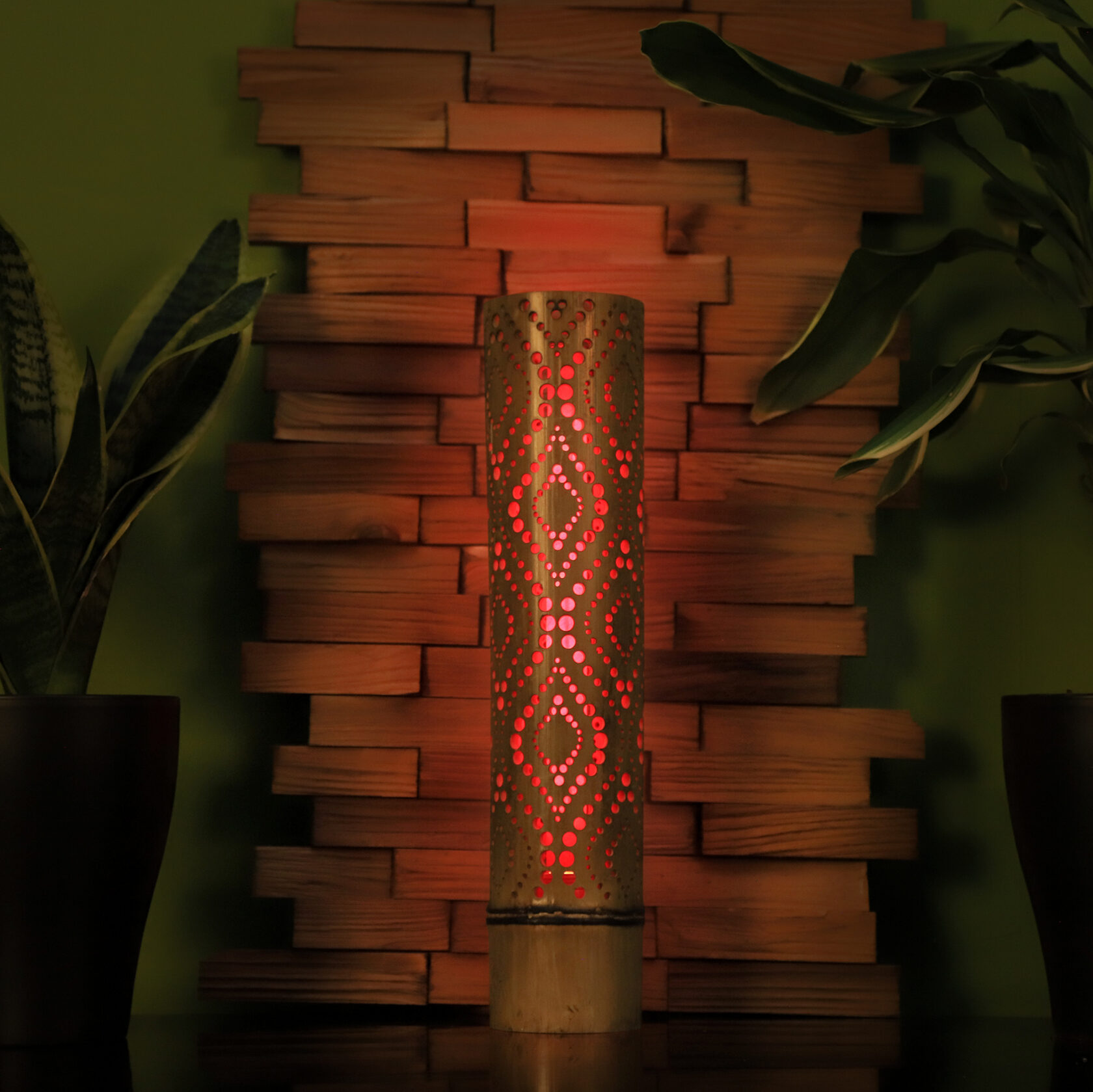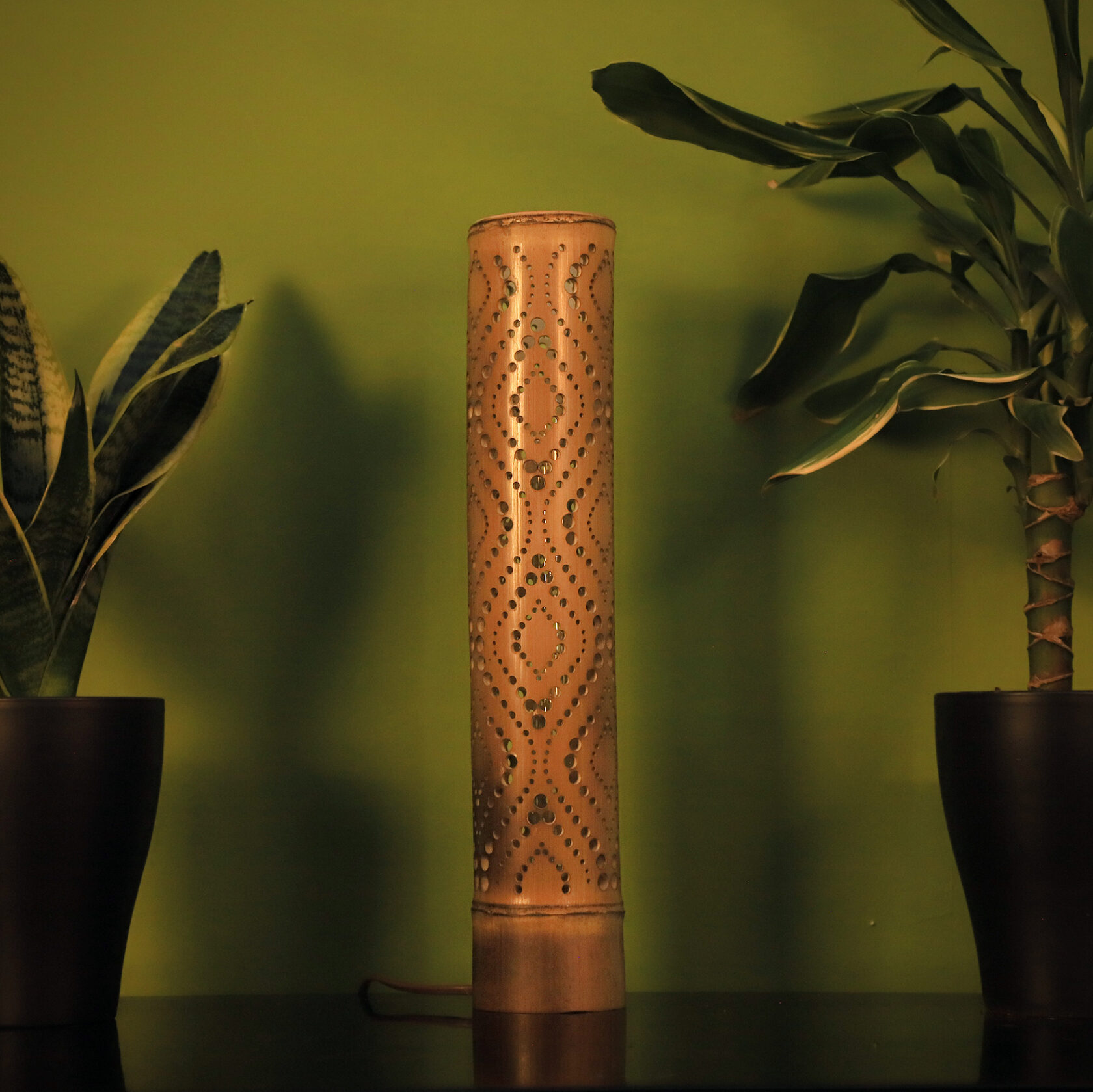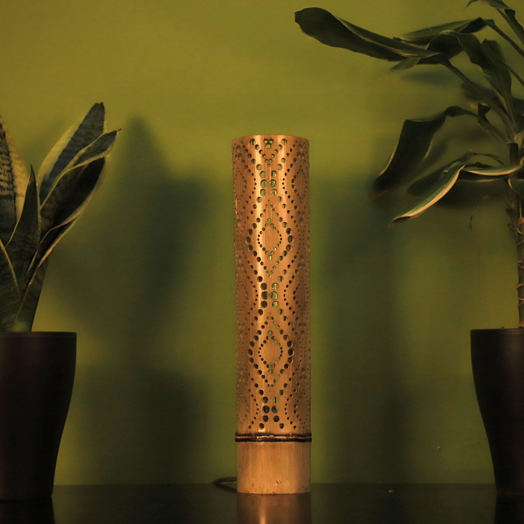Светильник из бамбука. Условный подвид «РУНО». Рисунок «РУНО» входит в серию несюжетных орнаментов по этническим мотивам.