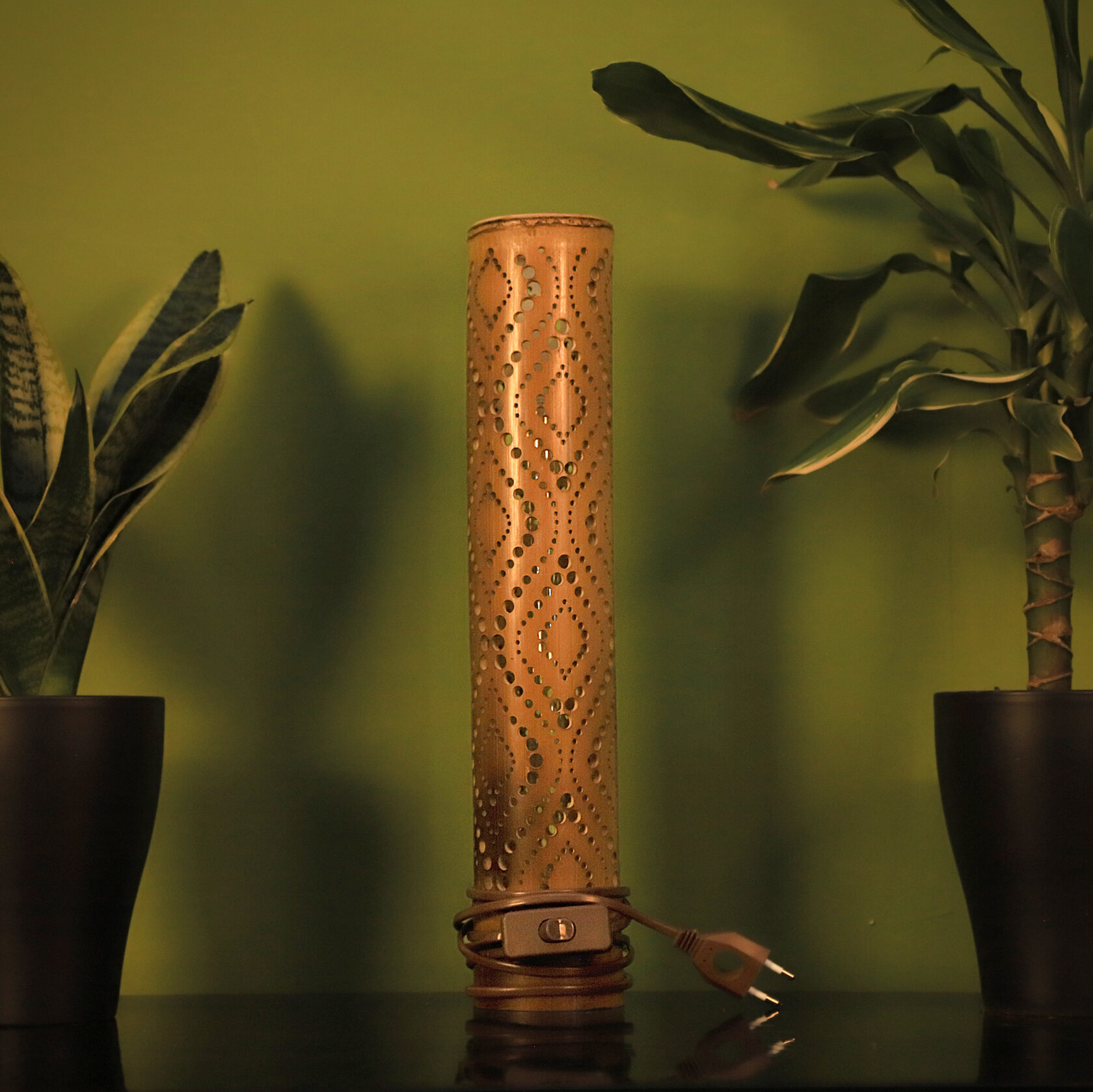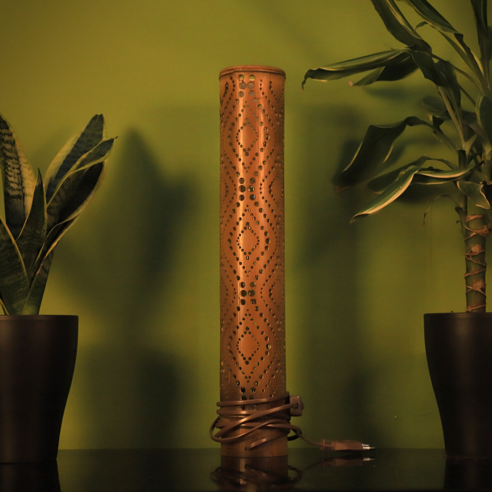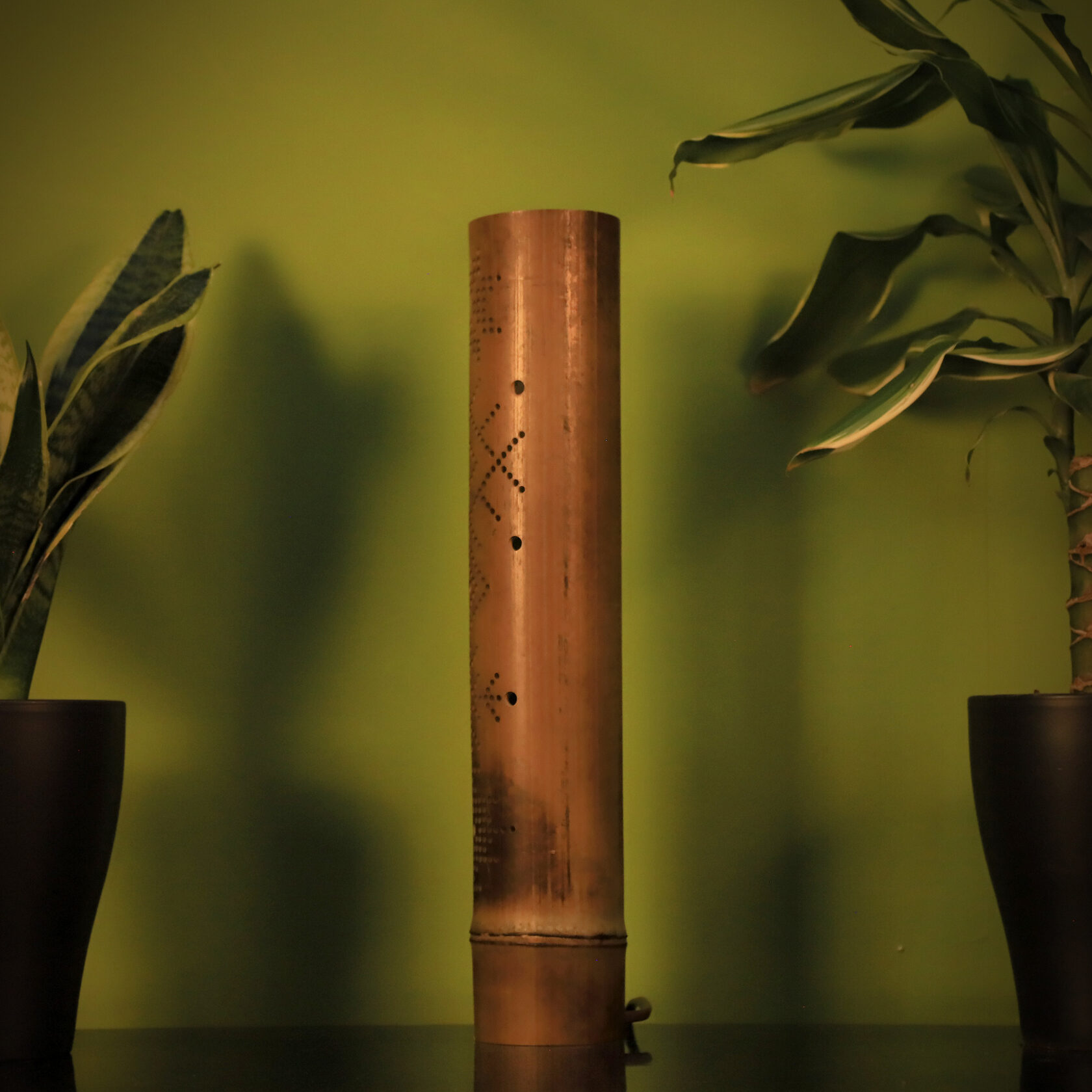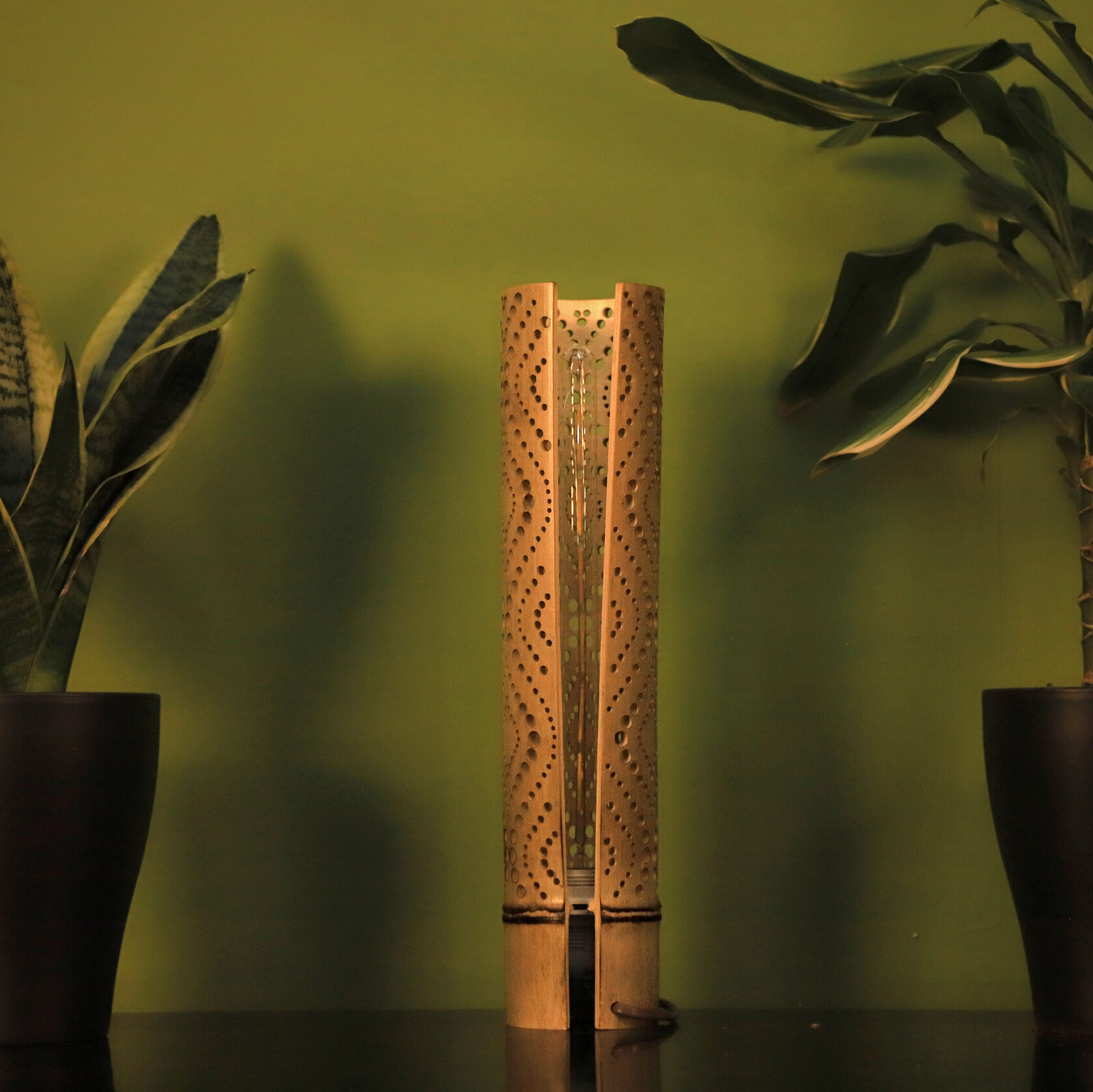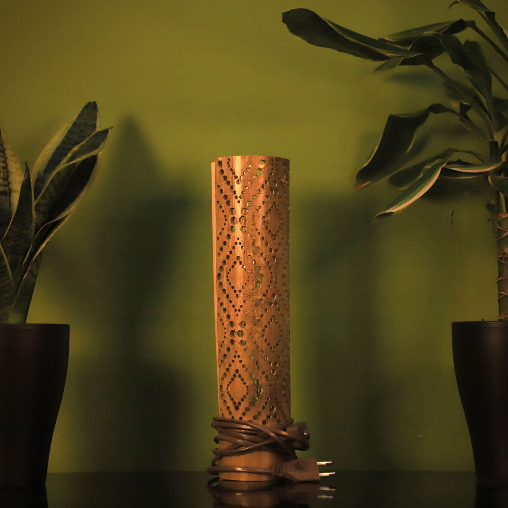 Светильник из бамбука. Условный подвид «РУНО». Рисунок «РУНО» входит в серию несюжетных орнаментов по этническим мотивам.