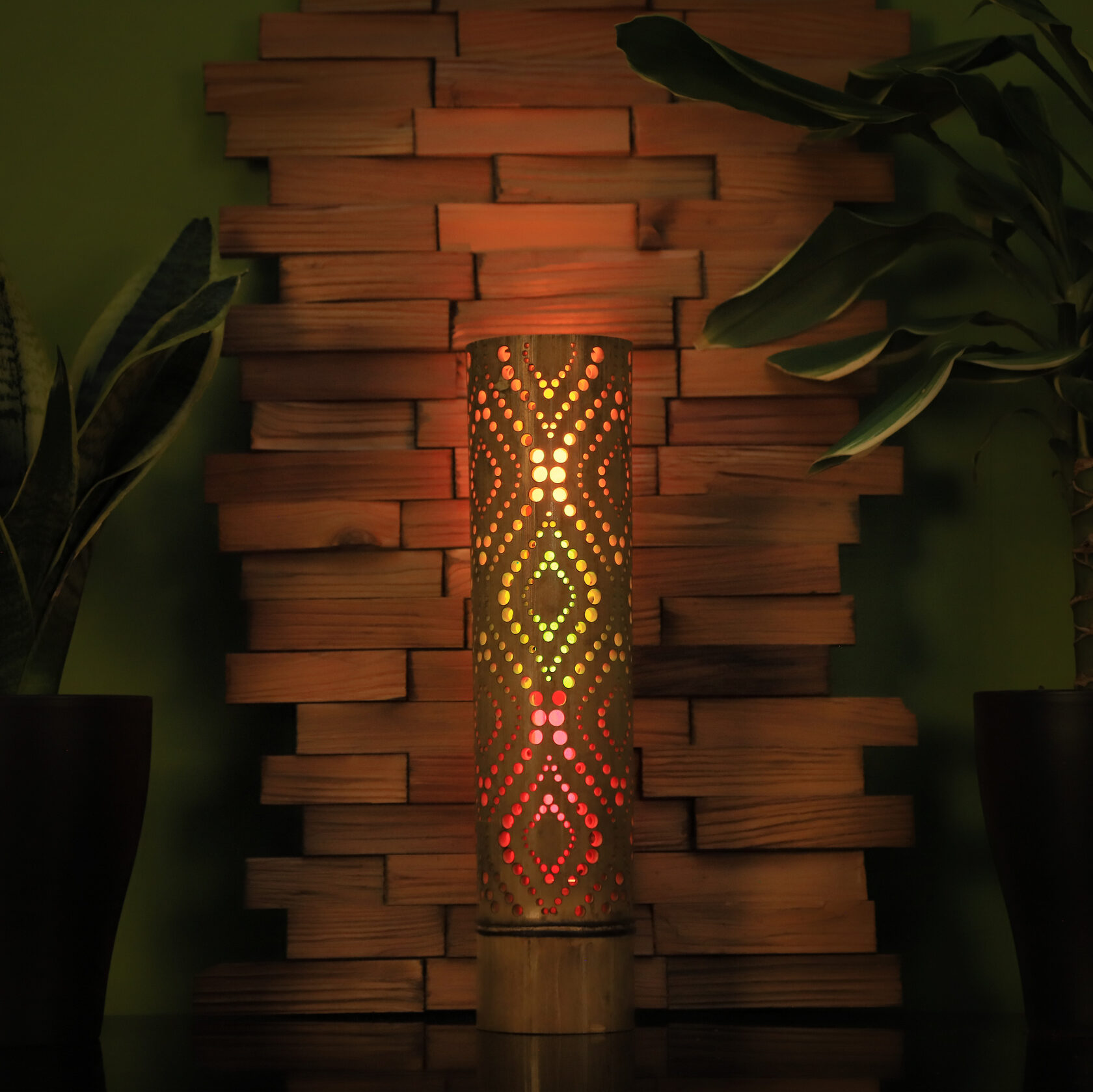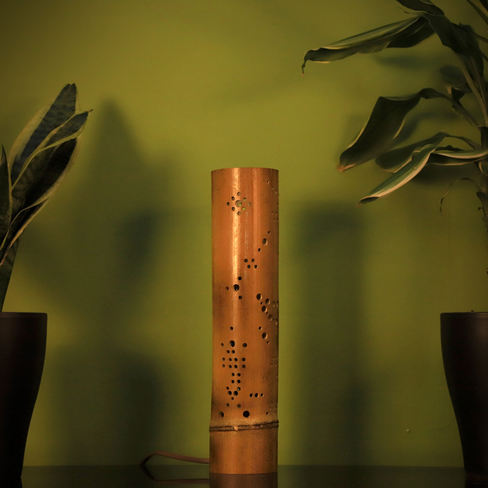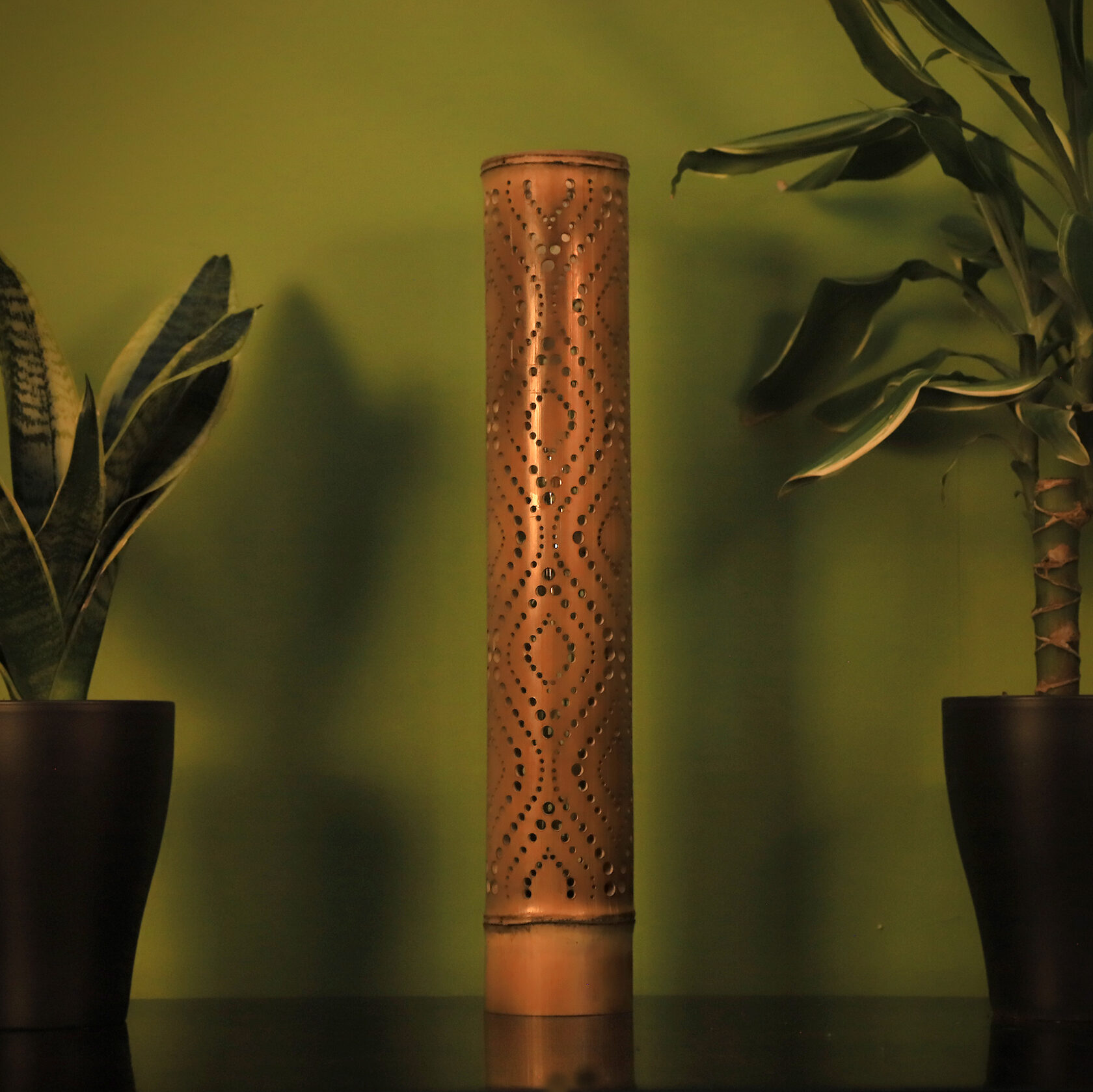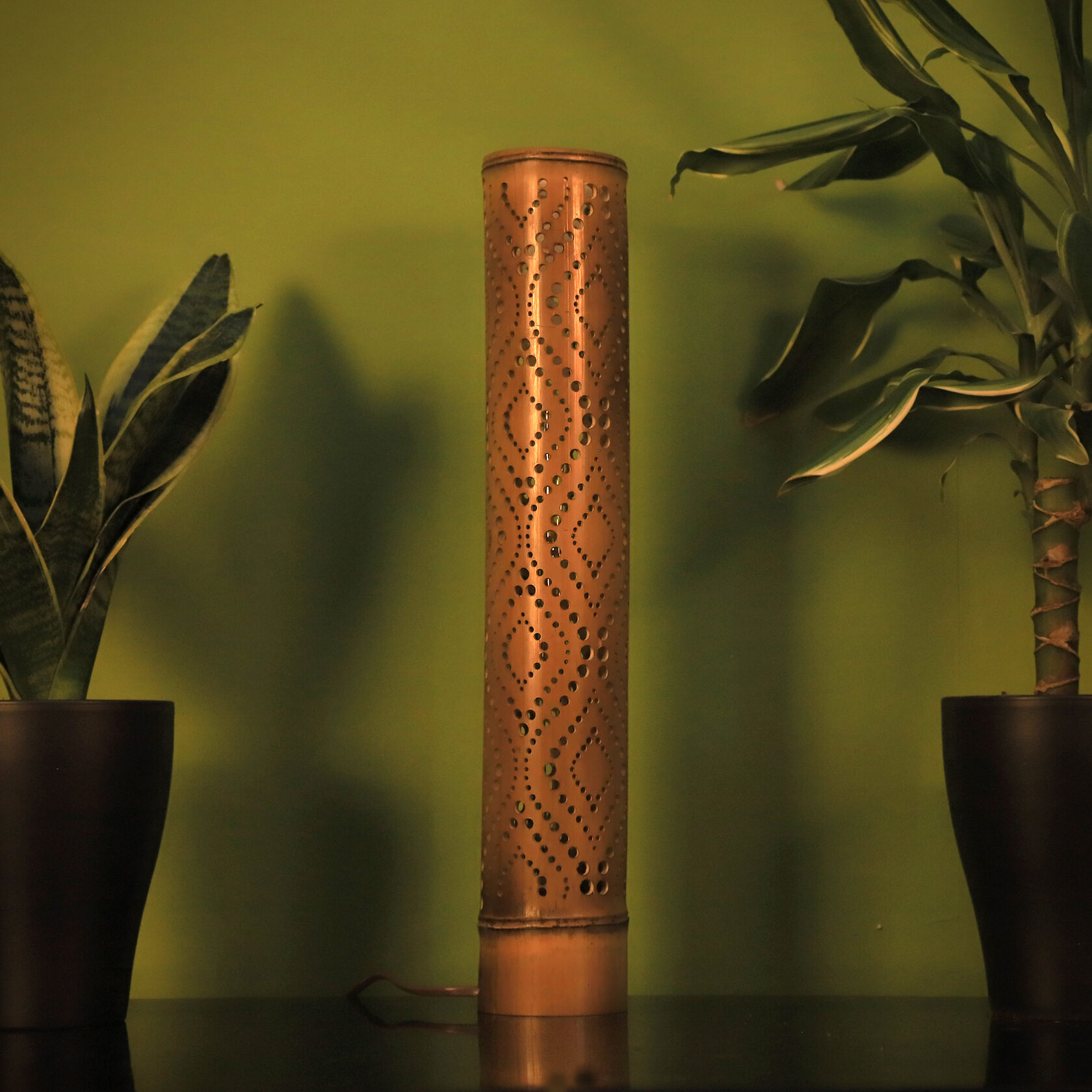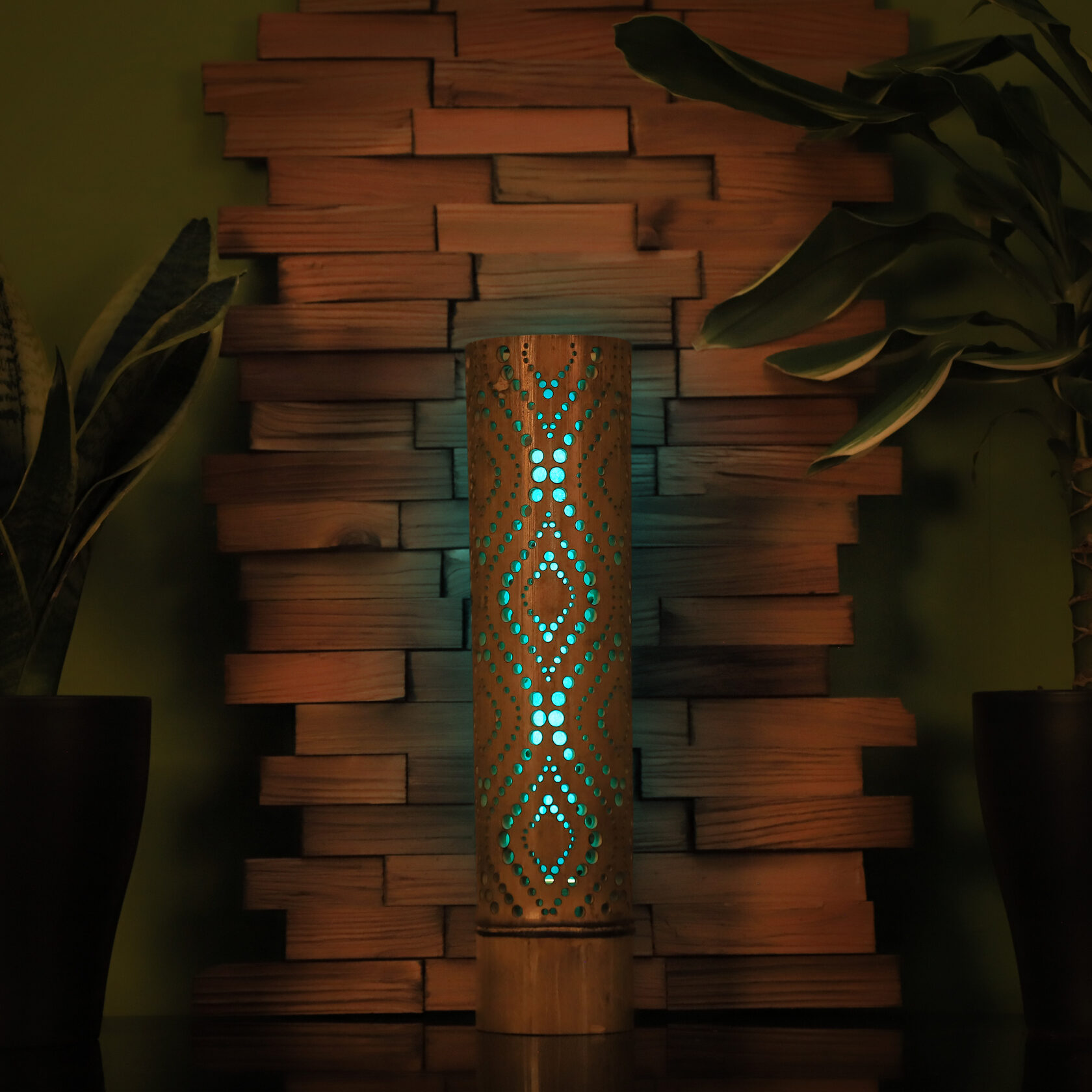 Светильник из бамбука. Условный подвид «РУНО». Рисунок «РУНО» входит в серию несюжетных орнаментов по этническим мотивам.