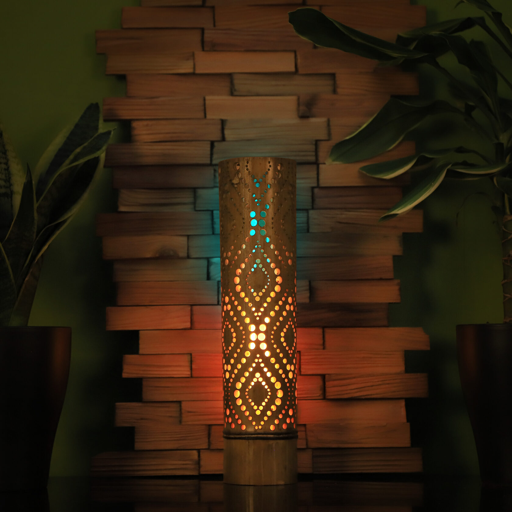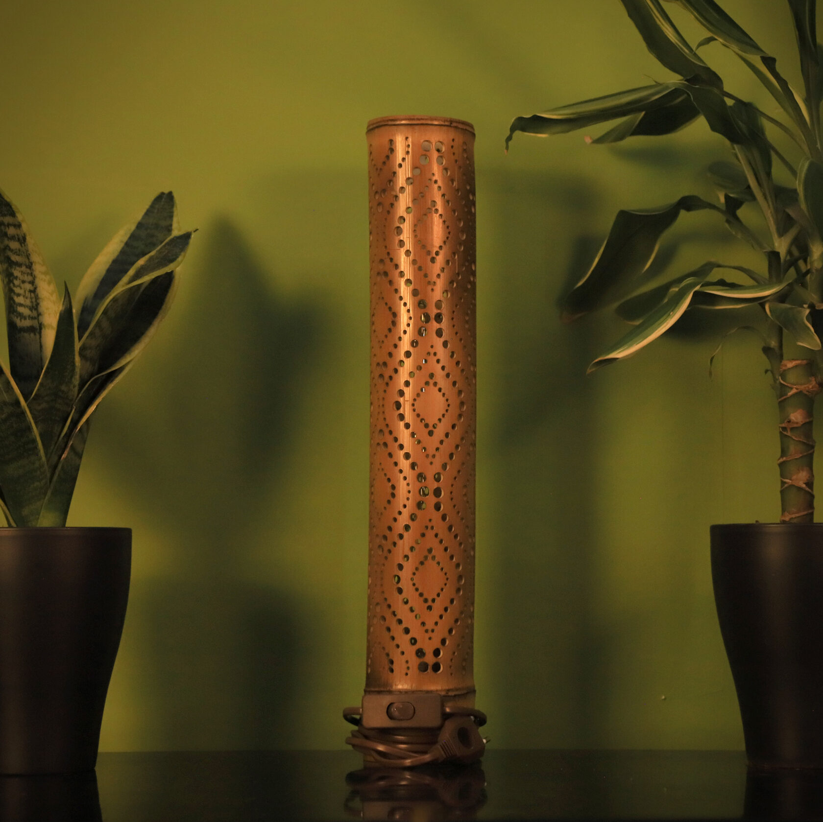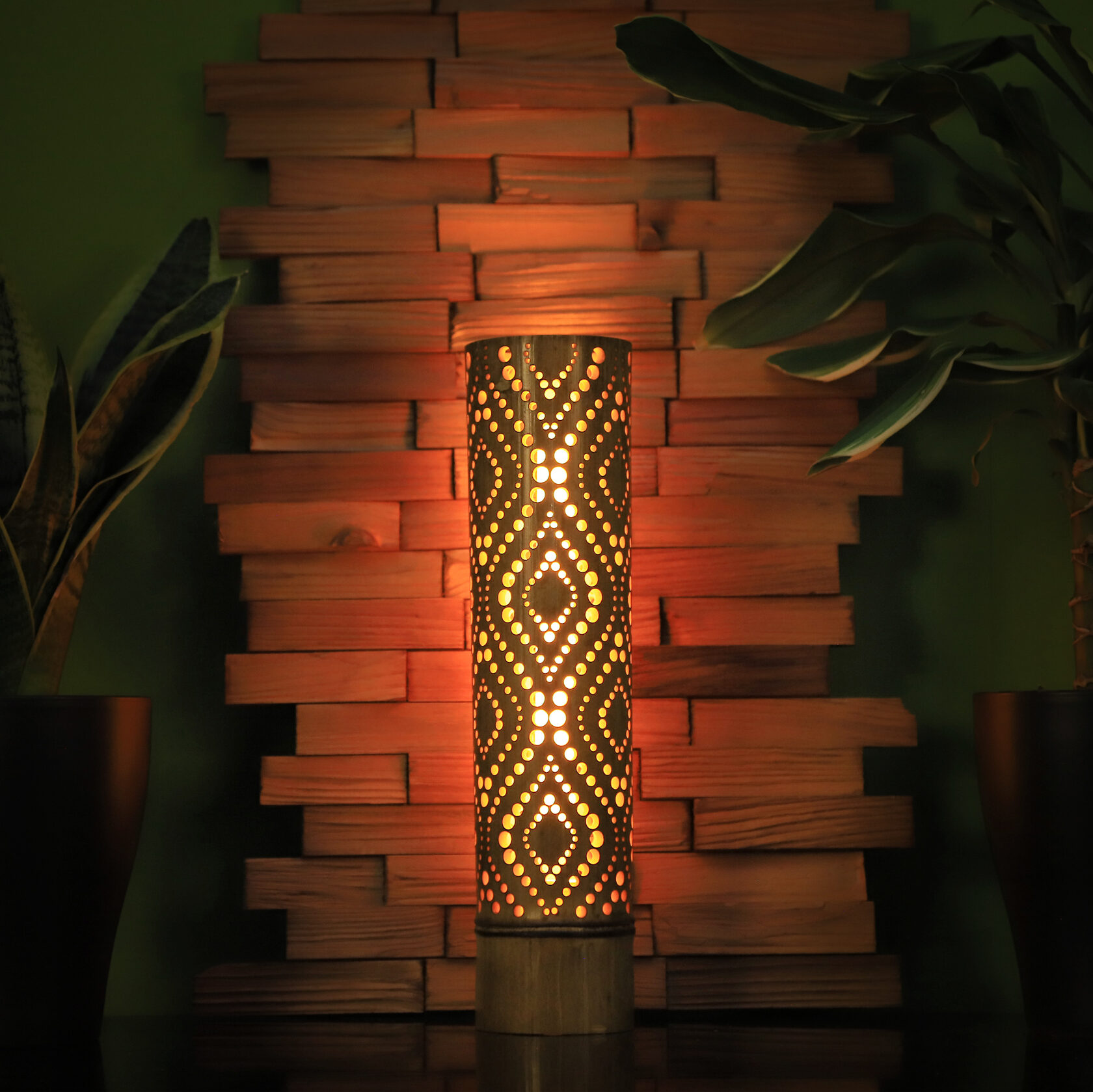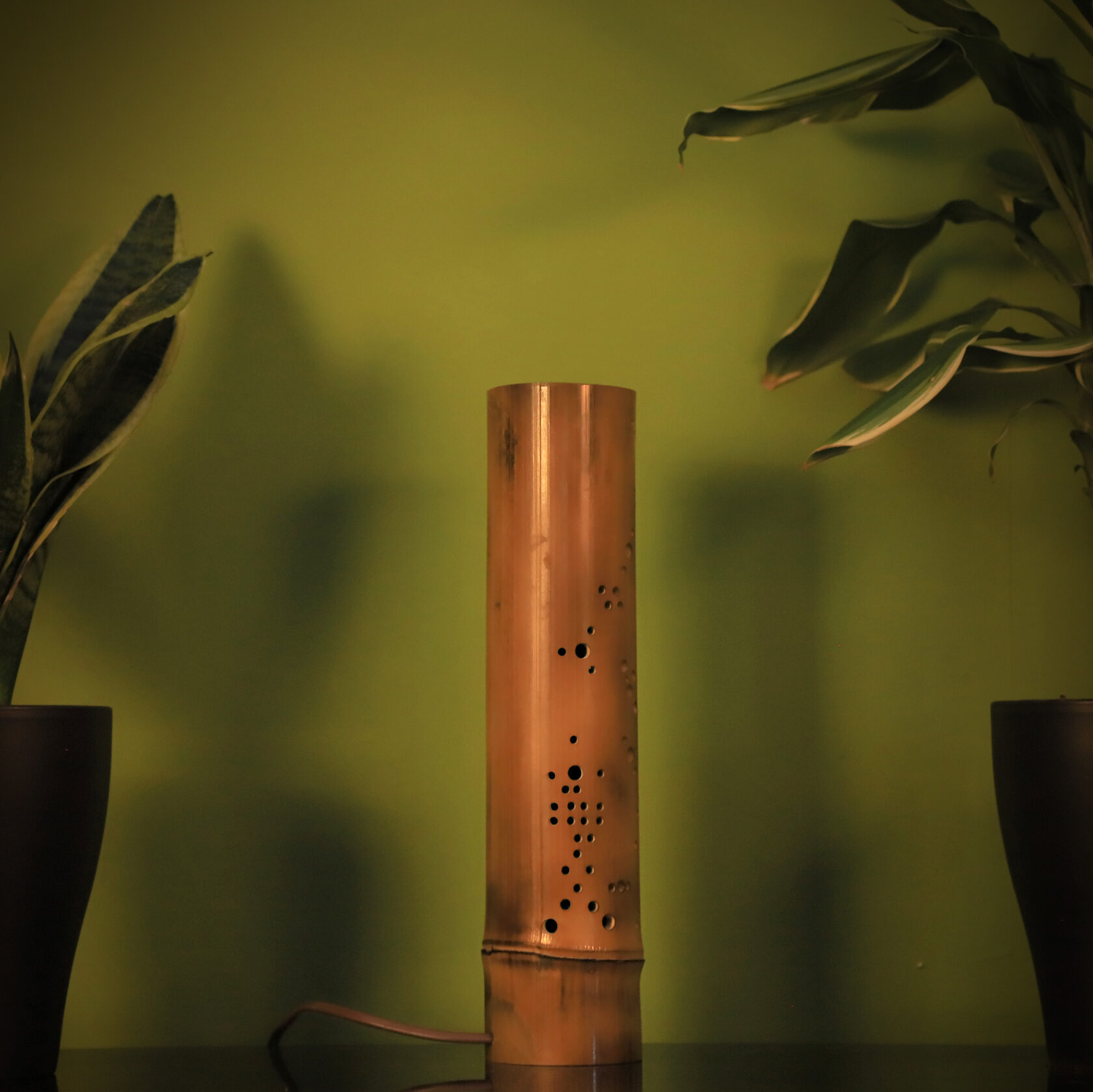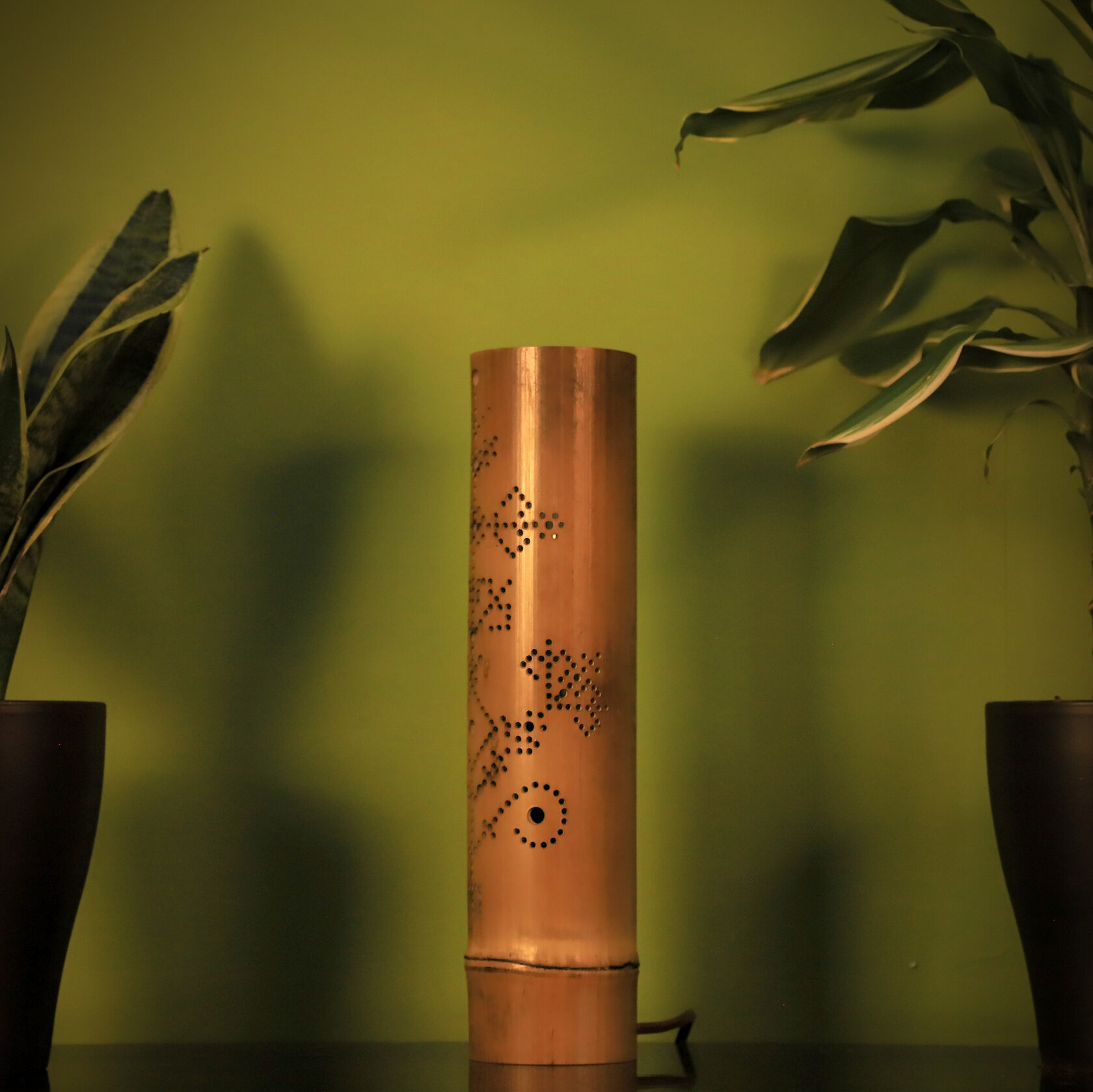 Светильник из бамбука. Условный подвид «РУНО». Рисунок «РУНО» входит в серию несюжетных орнаментов по этническим мотивам.