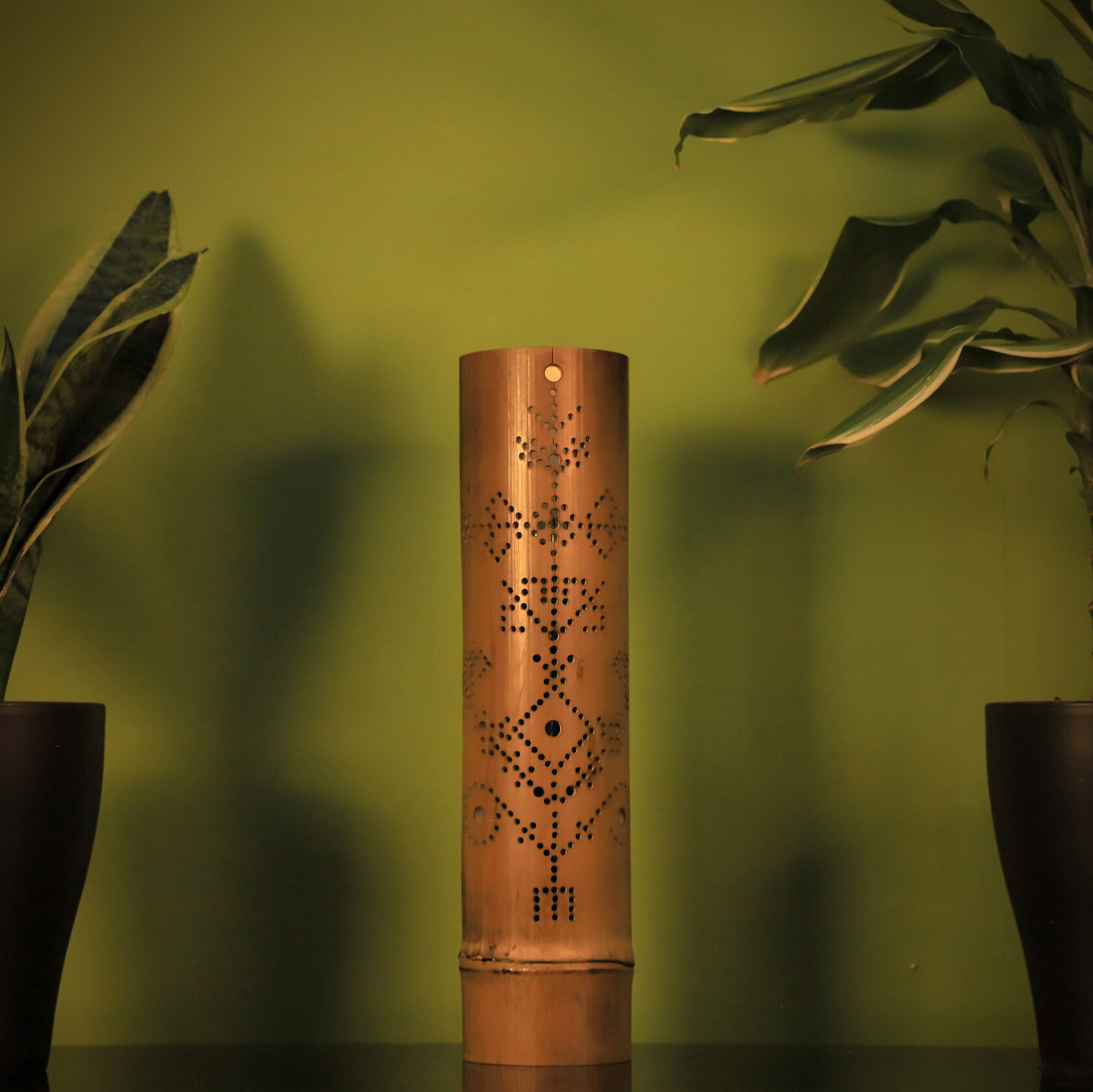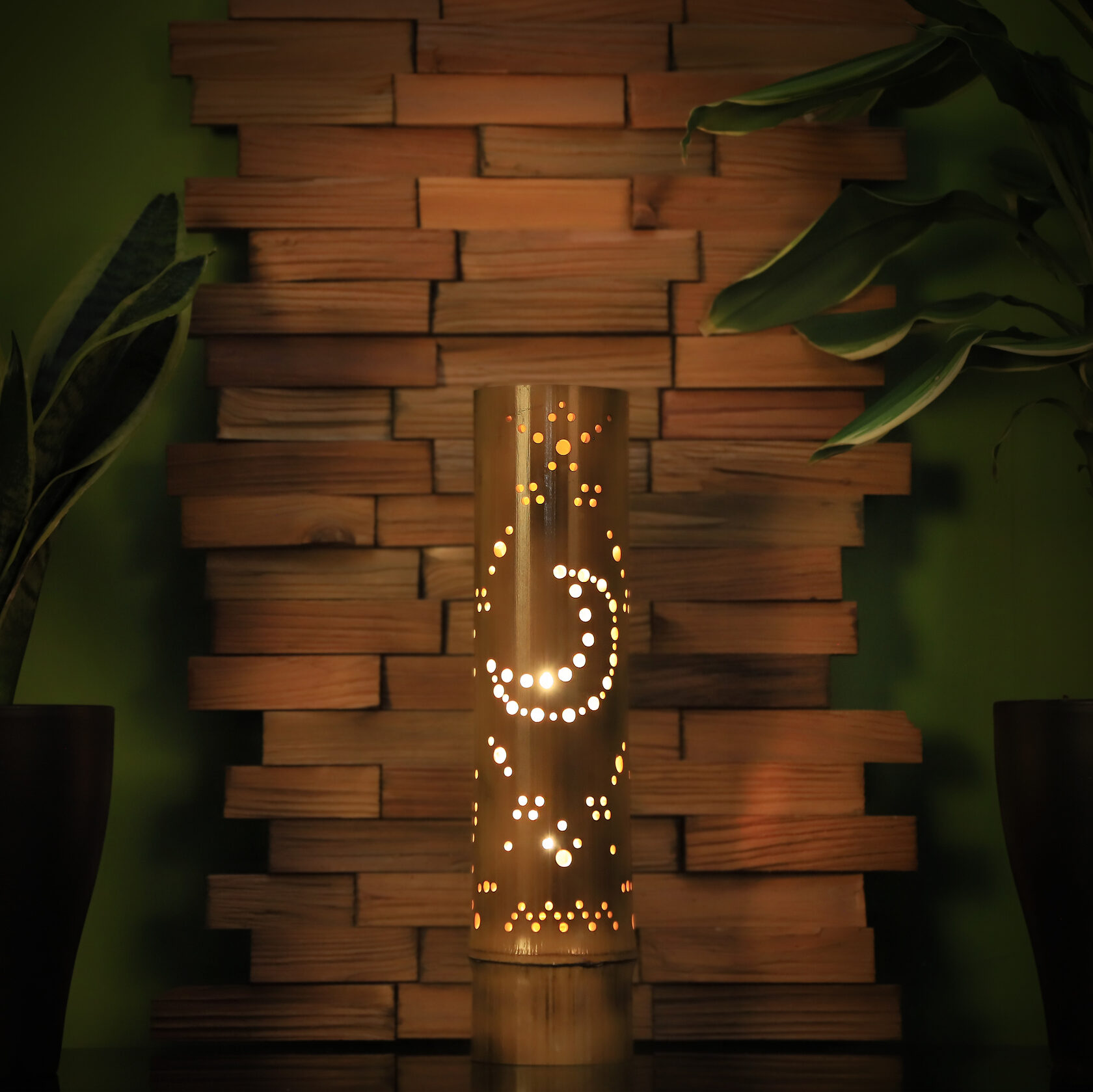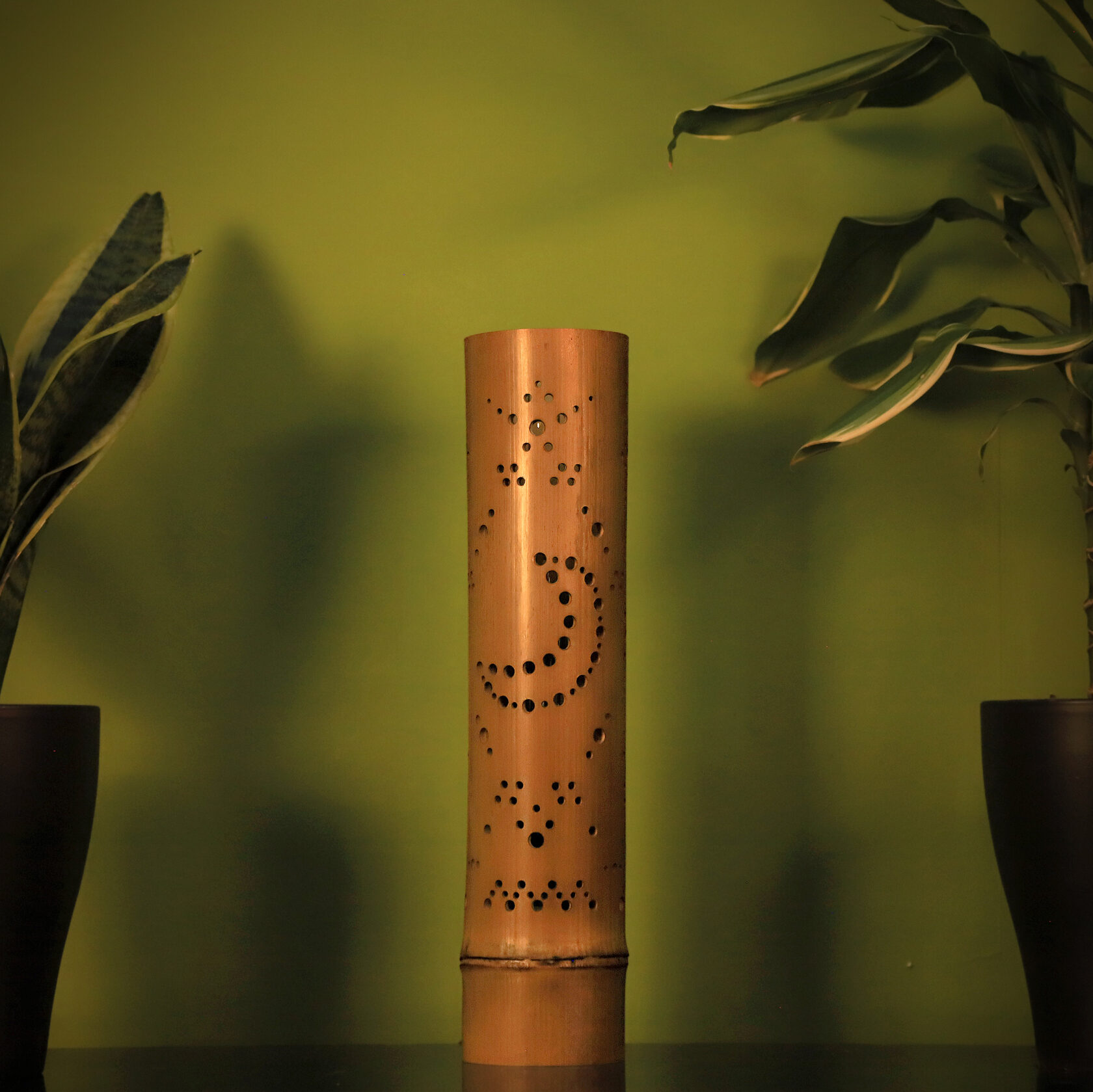 Светильник из бамбука. Условный подвид СВАСТИ Рисунок «СВАСТИ» входит в серию не сюжетных орнаментов по этническим мотивам.