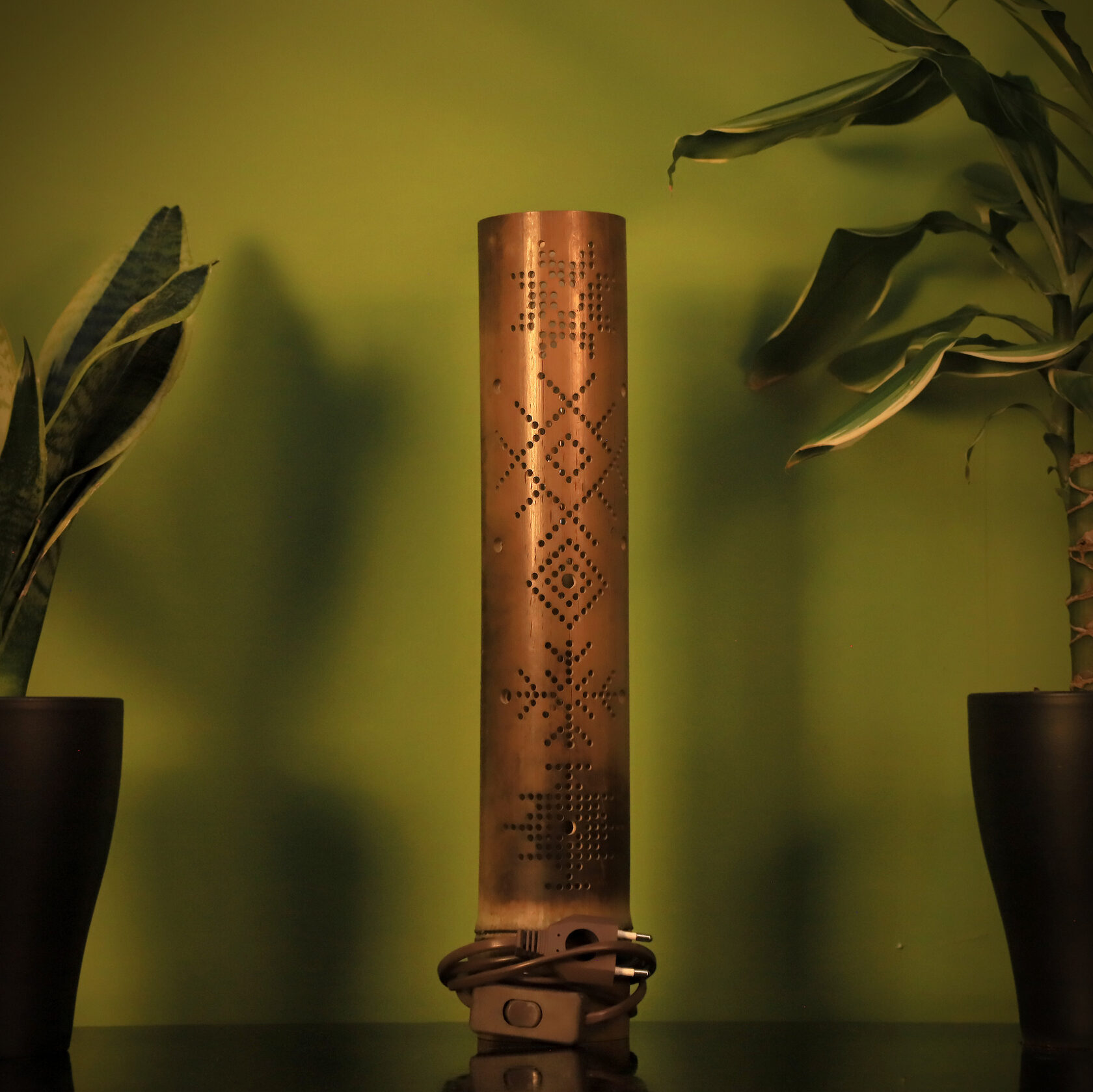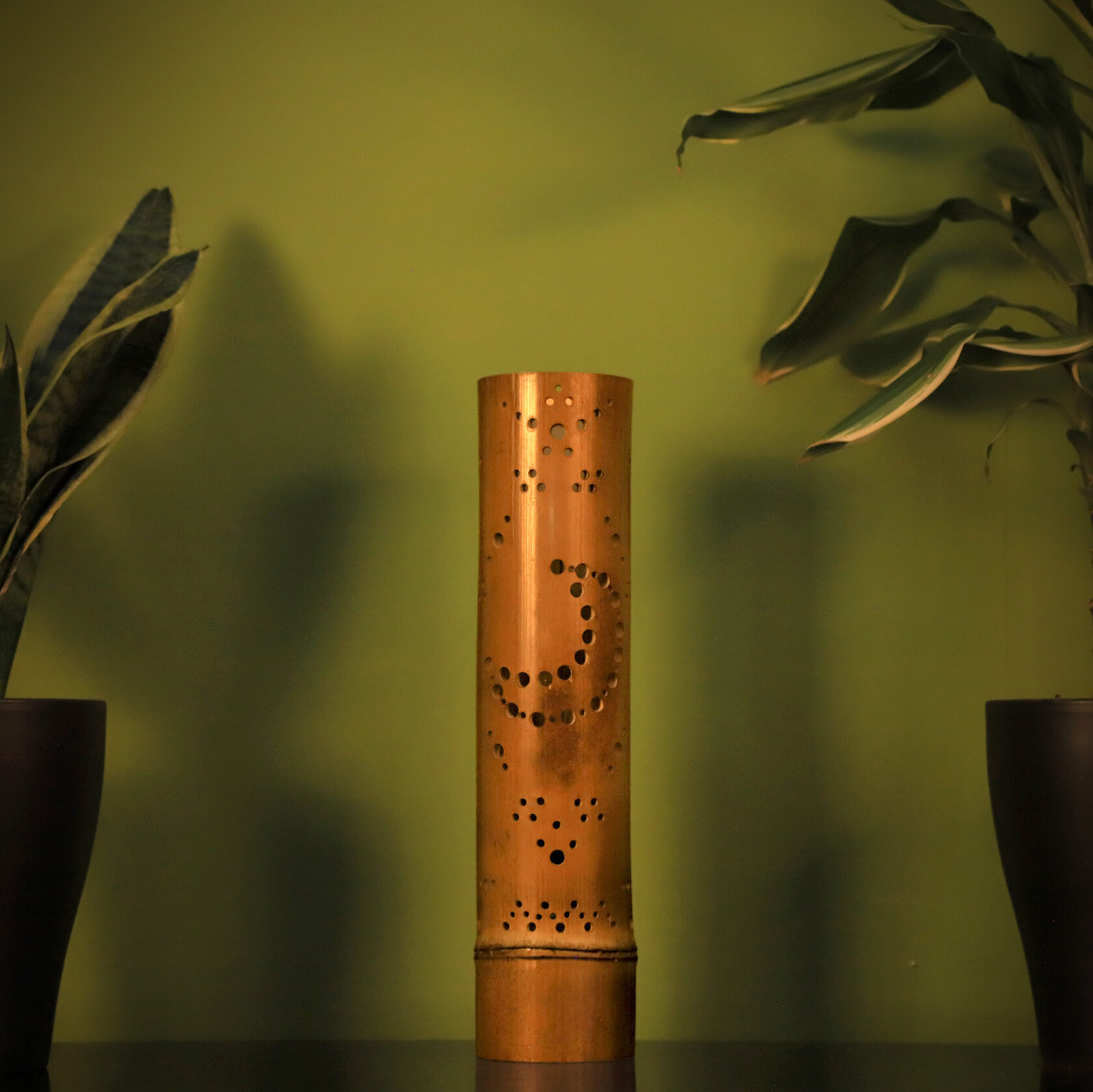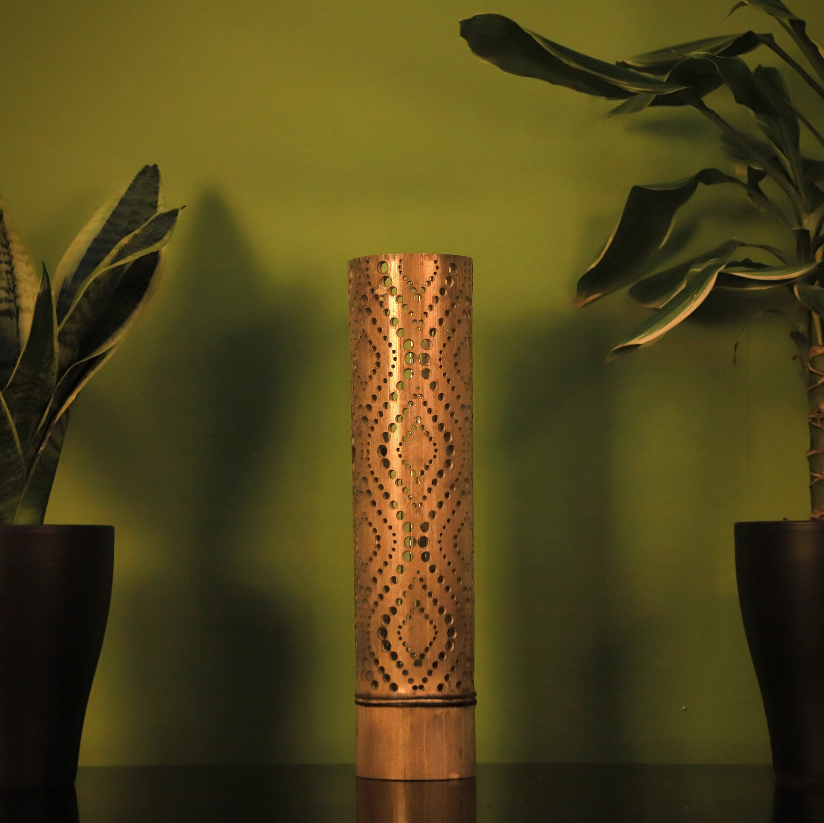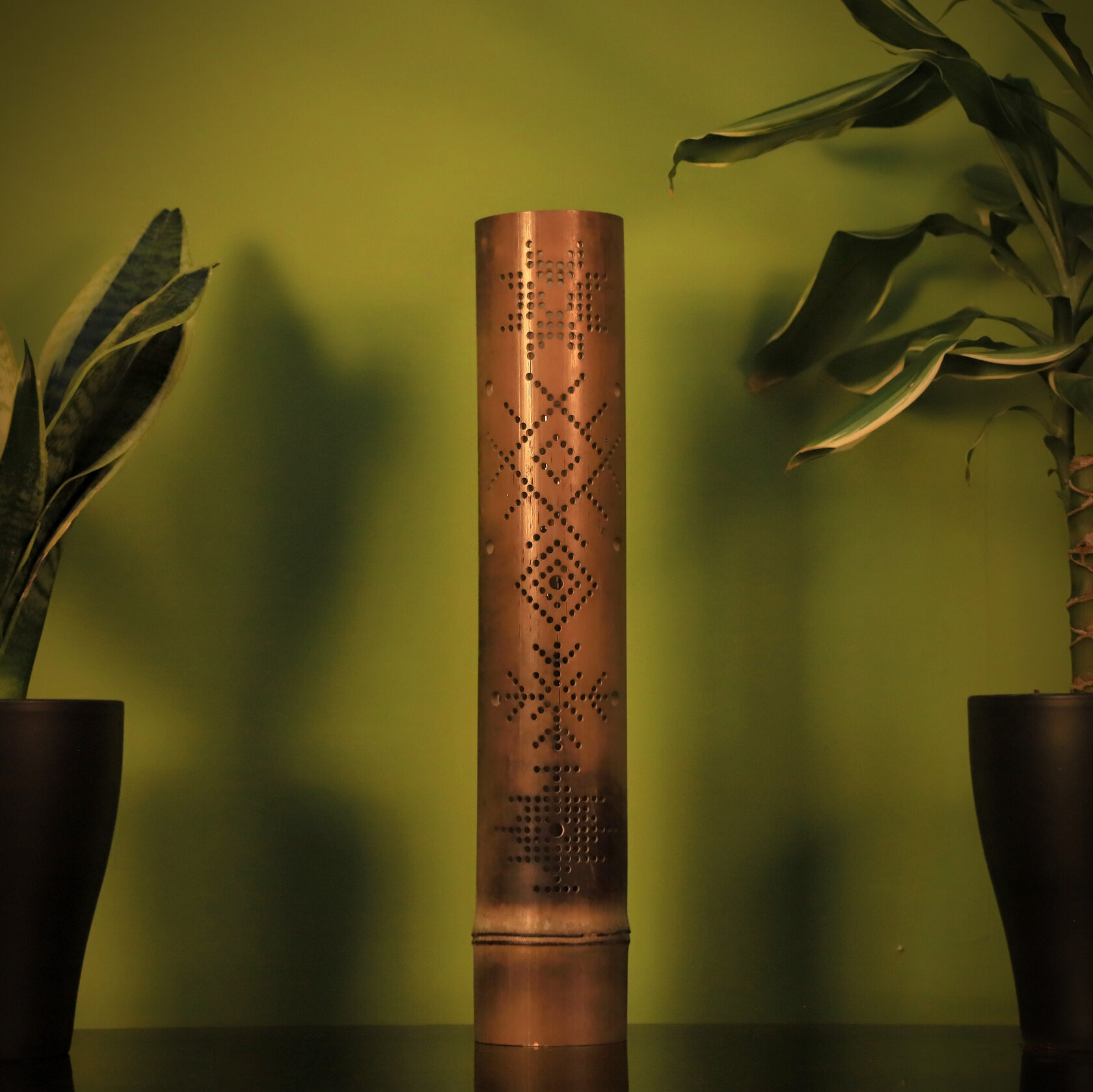 Светильник из бамбука. Условный подвид СВАСТИ Рисунок «СВАСТИ» входит в серию не сюжетных орнаментов по этническим мотивам.