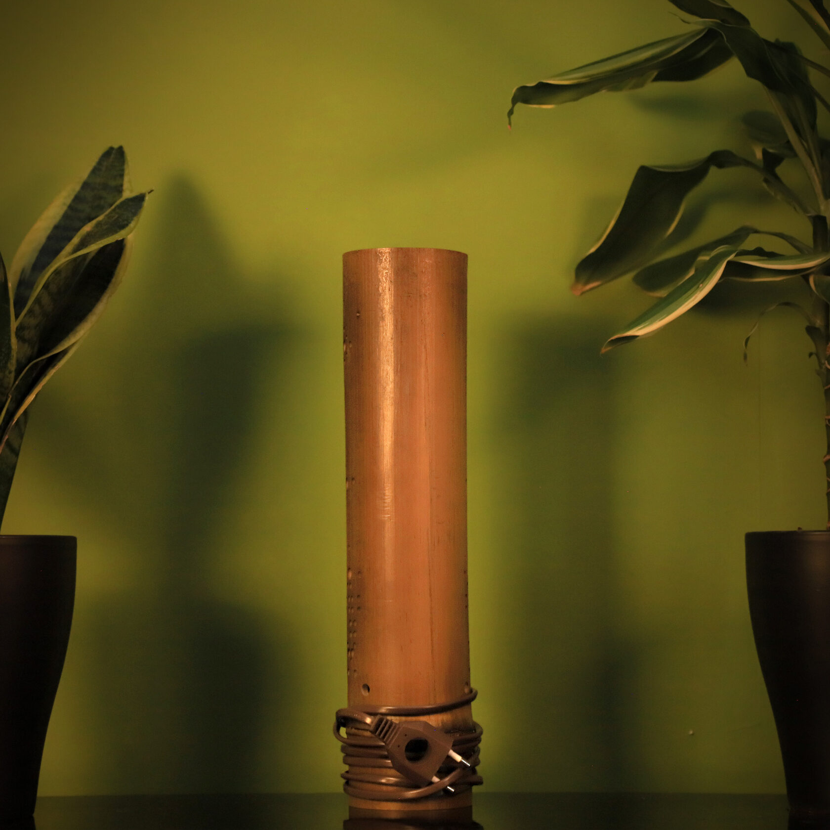 Материал – ствол бамбука. Высота 37 см Ширина 7 см. Внутри светодиодная лампа в удлиненном ретро стиле 30 см длинны. Цоколь Е14. Коричневый сетевой шнур EU plug 1,5 метра с выключателем. Вес 200-300 гр.