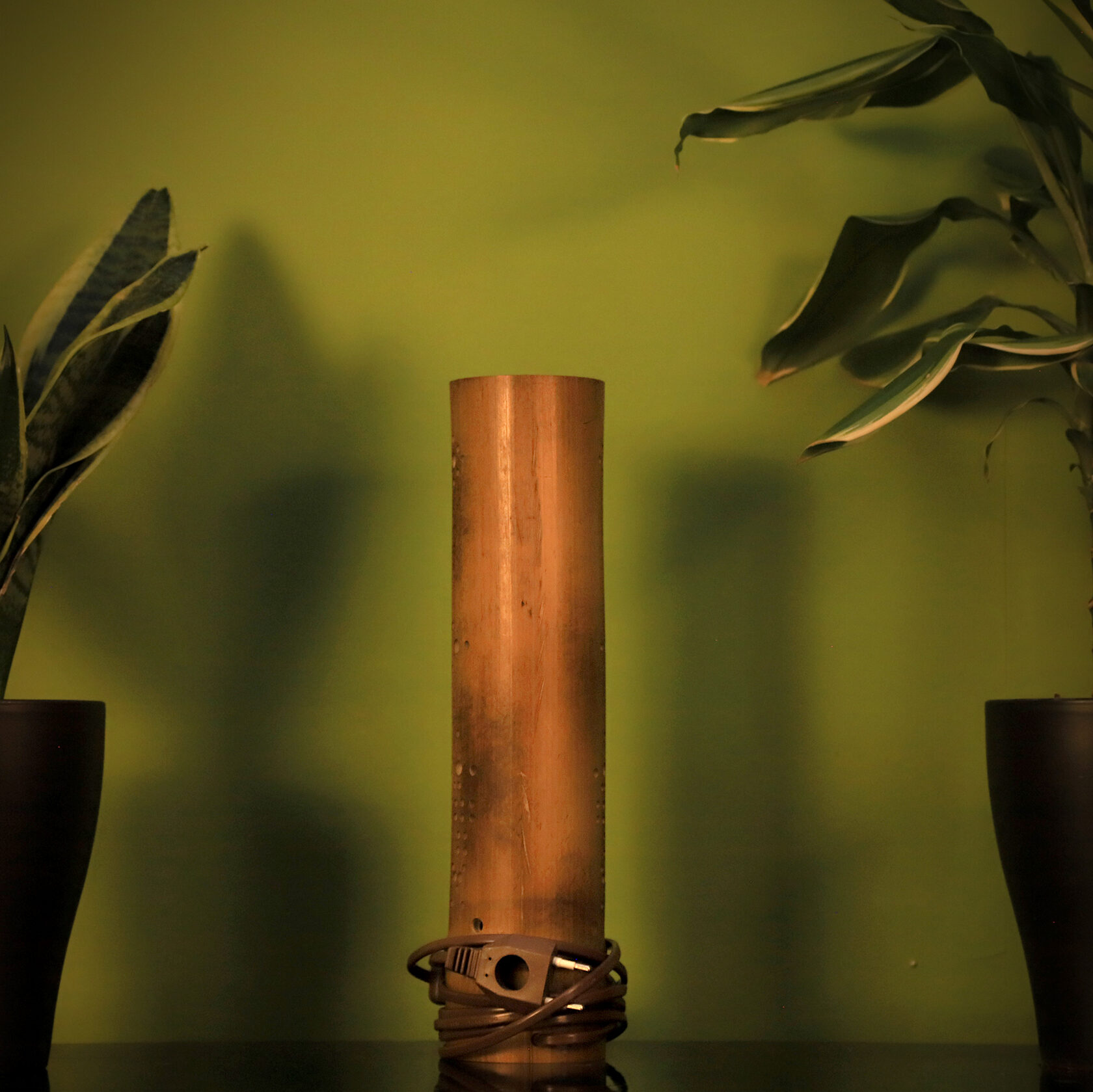 Материал – ствол бамбука. Высота 45 см Ширина 7,3 см. Внутри светодиодная лампа в удлиненном ретро стиле 30 см длинны. Цоколь Е14. Коричневый сетевой шнур EU plug 1,5 метра с выключателем. Вес 200-300 гр.