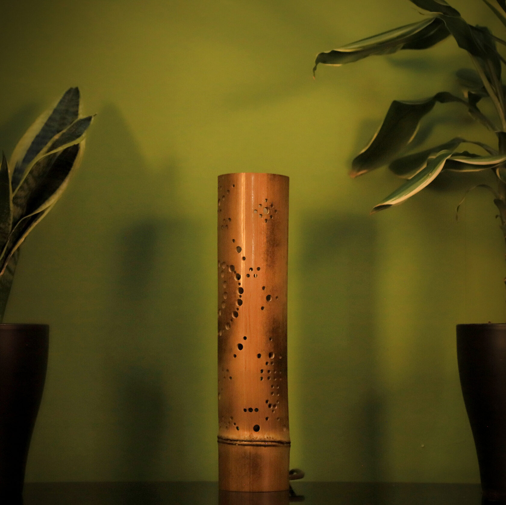 Светильник из бамбука. Условный подвид ВОЛШЕБНЫЙ КУСТ Рисунок «ВОЛШЕБНЫЙ КУСТ» входит в серию не сюжетных орнаментов по этническим мотивам.