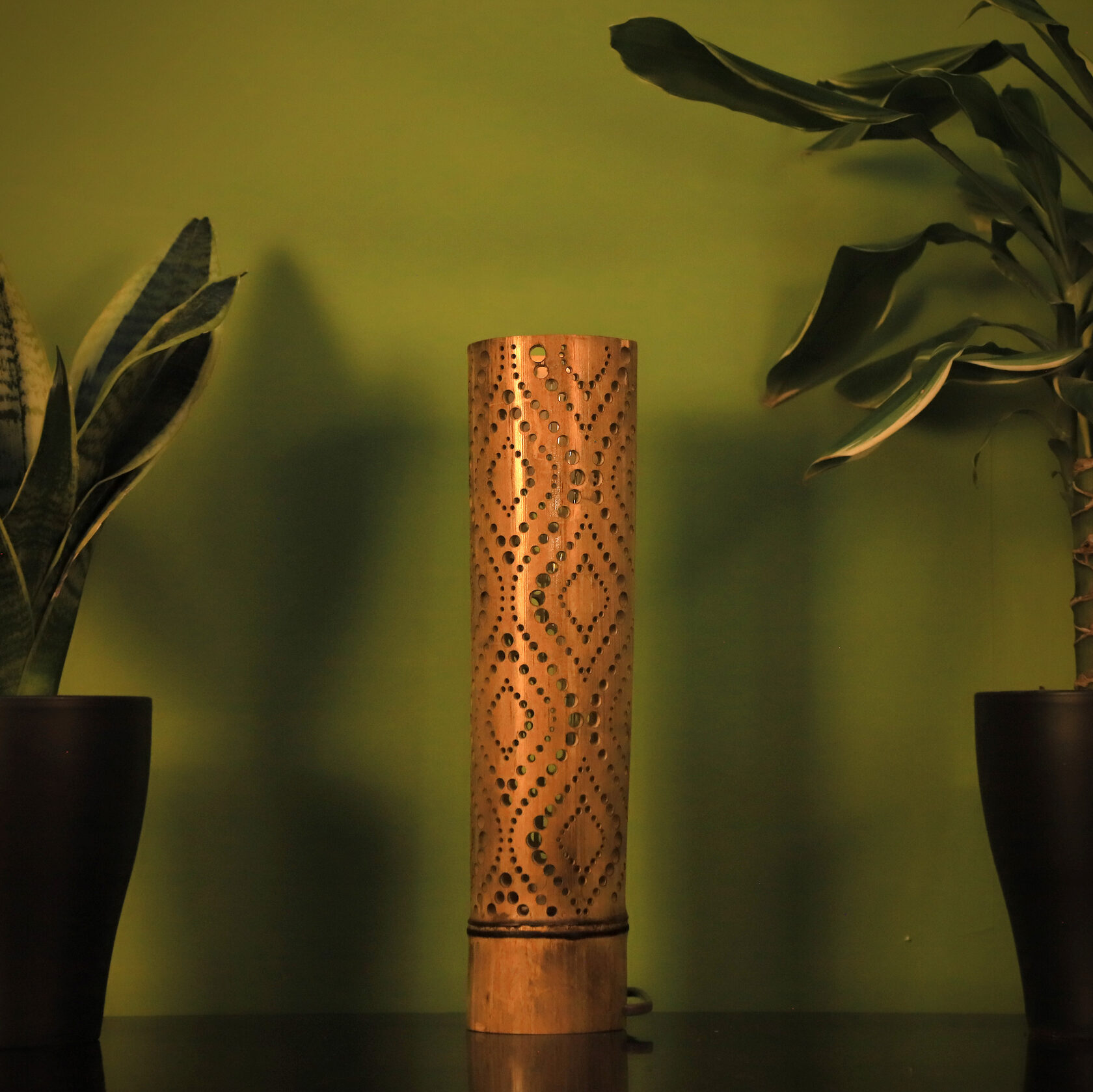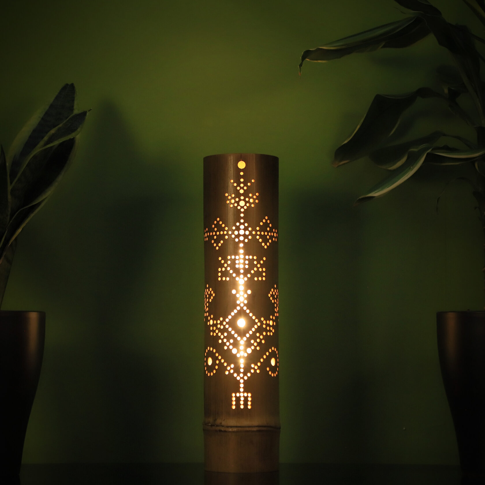 Светильник из бамбука. Условный подвид «ВАДА» Рисунок «ВАДА» входит в серию несюжетных орнаментов по этническим мотивам.